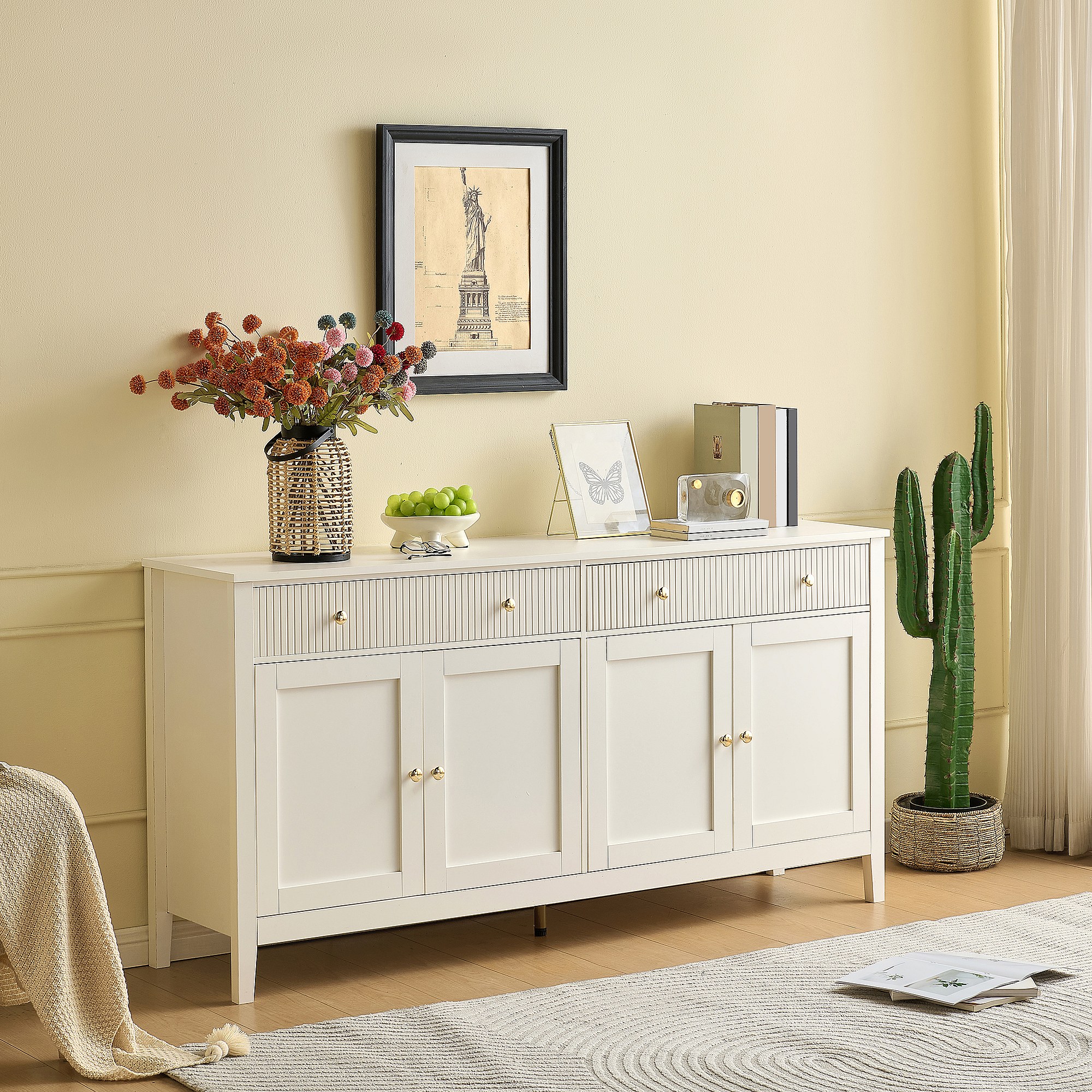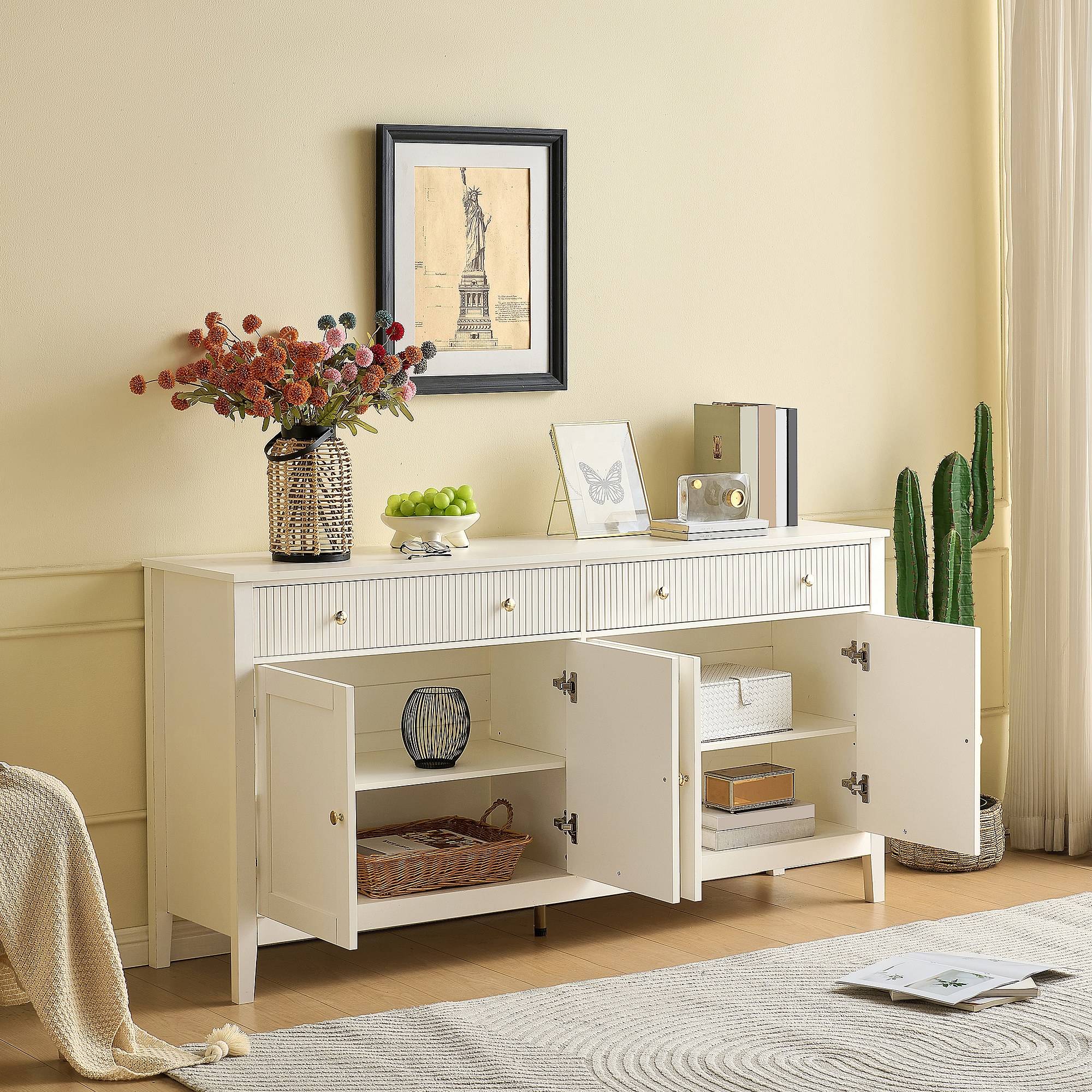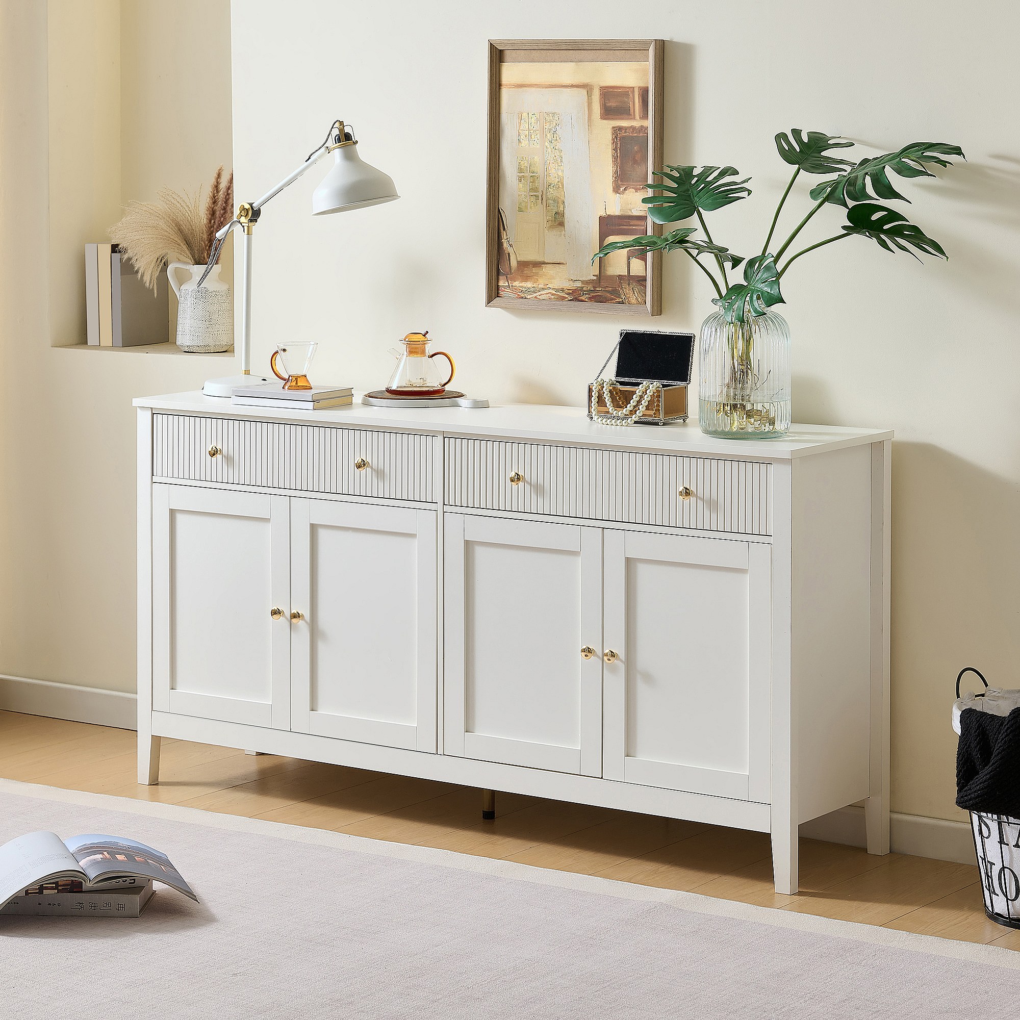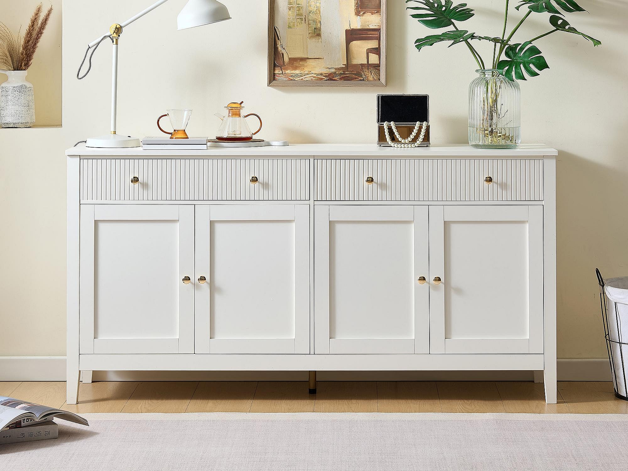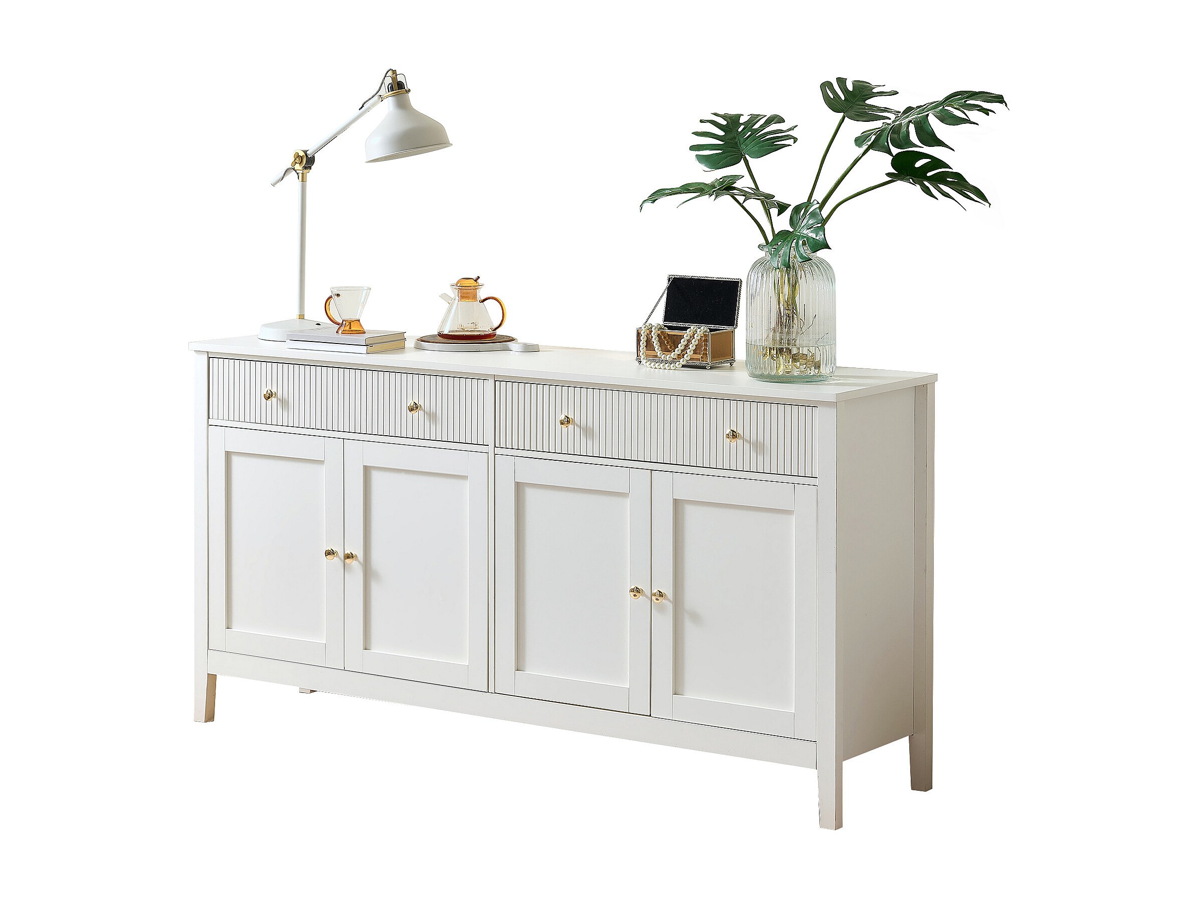 Nowoczesny bufet 162x40x80 cm - z 4 drzwiami - Nogi metalowe - MDF + płyty wiórowe - Biały