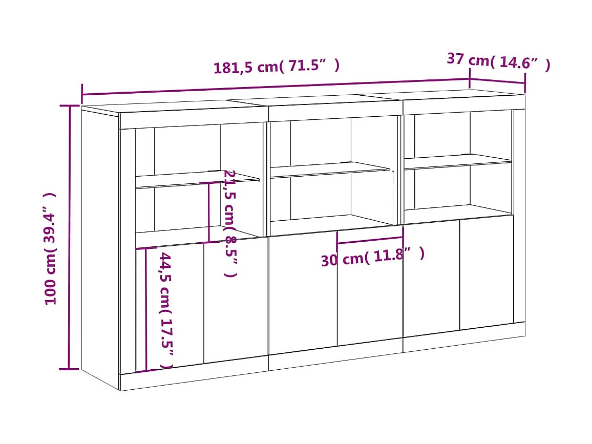 Nowoczesny bufet dębowy Sonoma 181,5 cm z personalizowanym oświetleniem LED RGB i dużą przestrzenią do przechowywania
