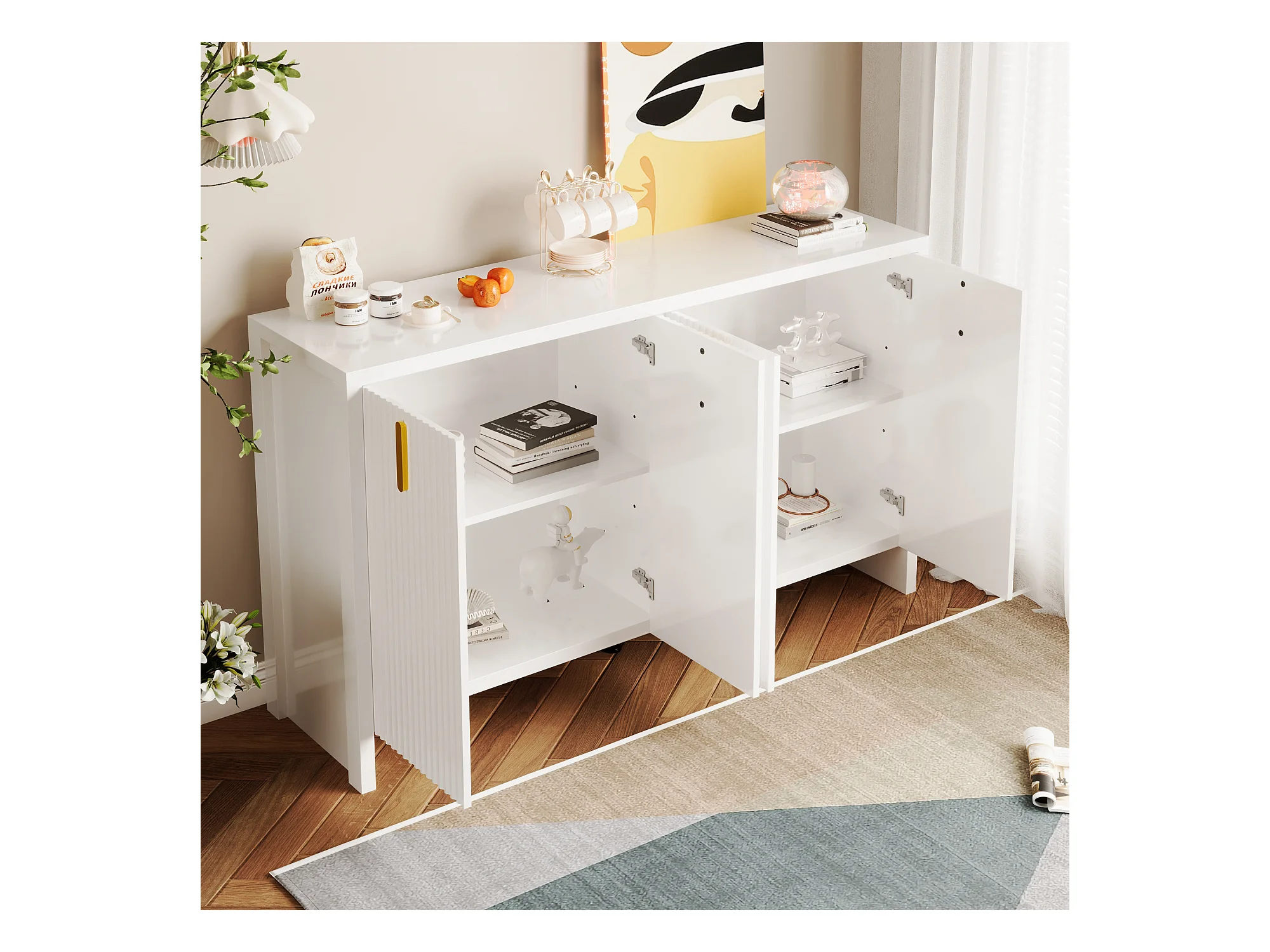 Błyszczący buffet 140x40x80 cm - z 4 drzwiami - metalowe uchwyty i nogi - biały