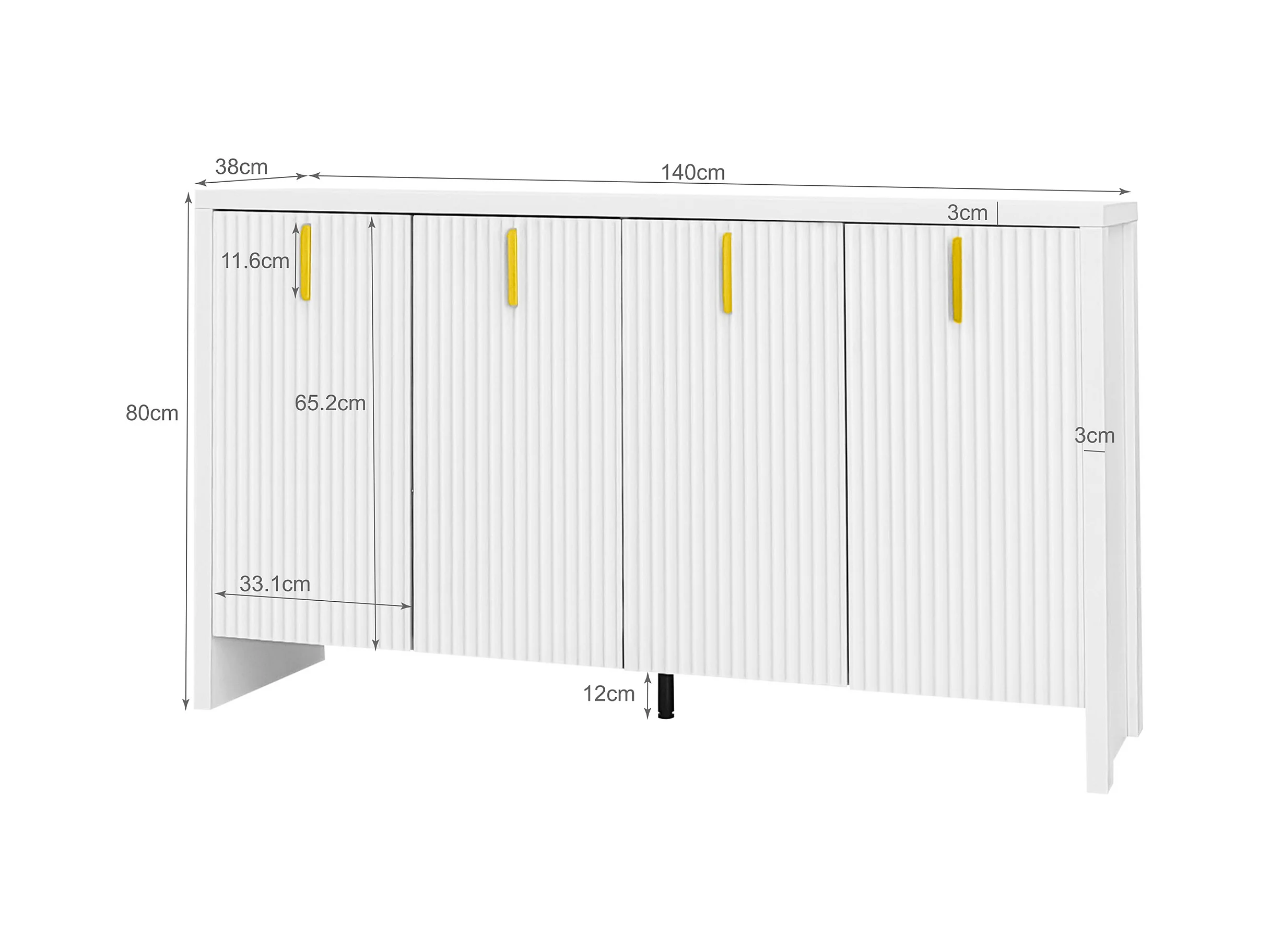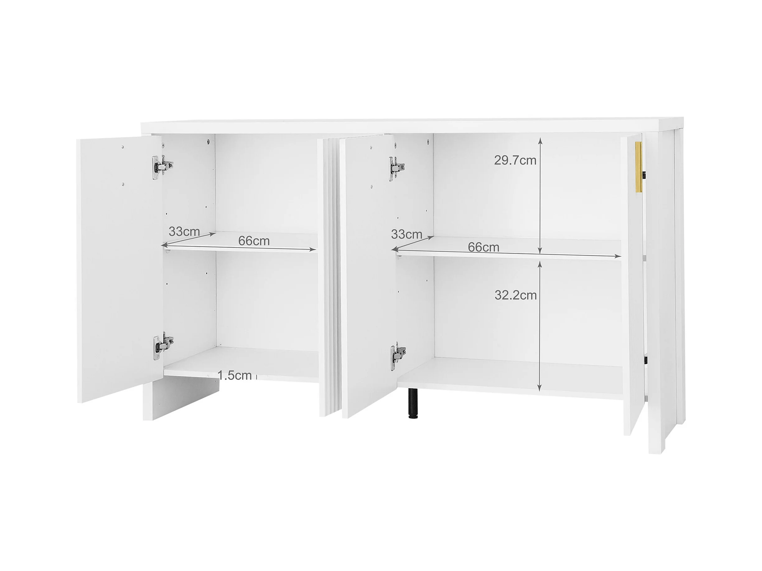 Buffet 140x40x80cm - 4 drzwi - z regulowanymi półkami - Biały + Złoty