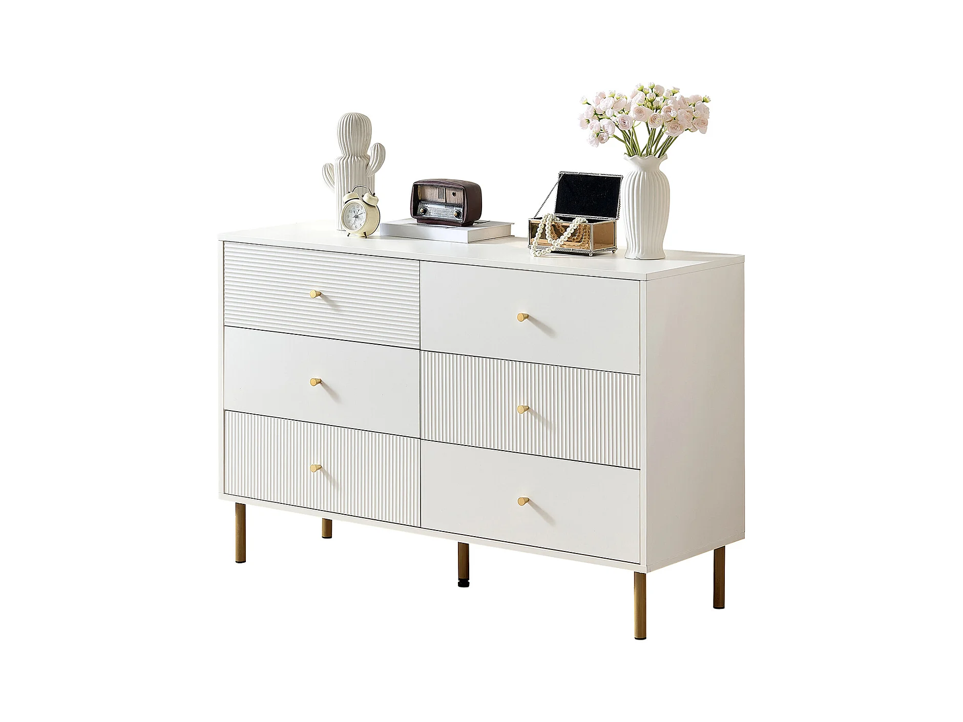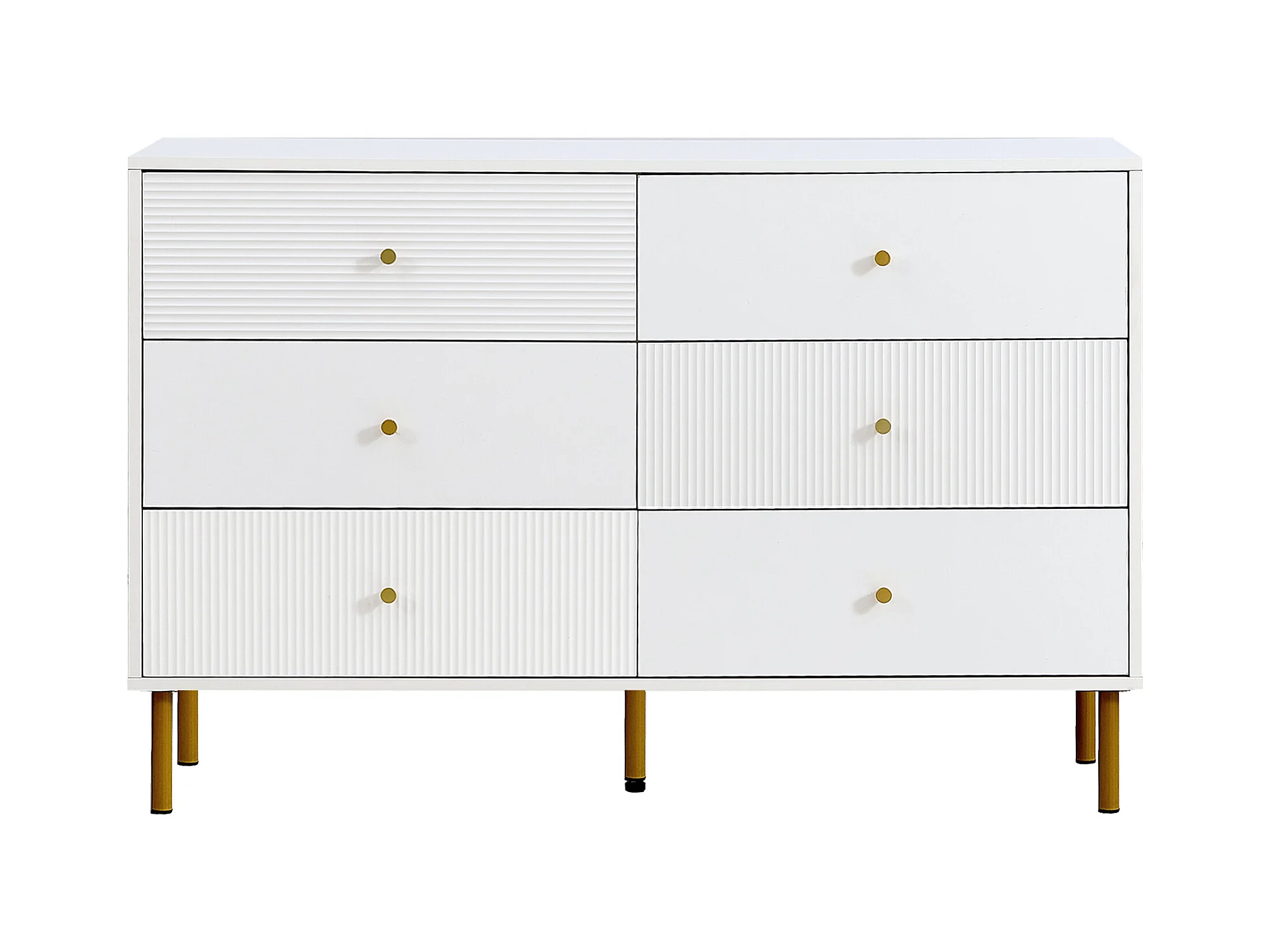 Nowoczesny buffet 120x40x78 cm - 6 szuflad - Nóżki metalowe - MDF - Biały