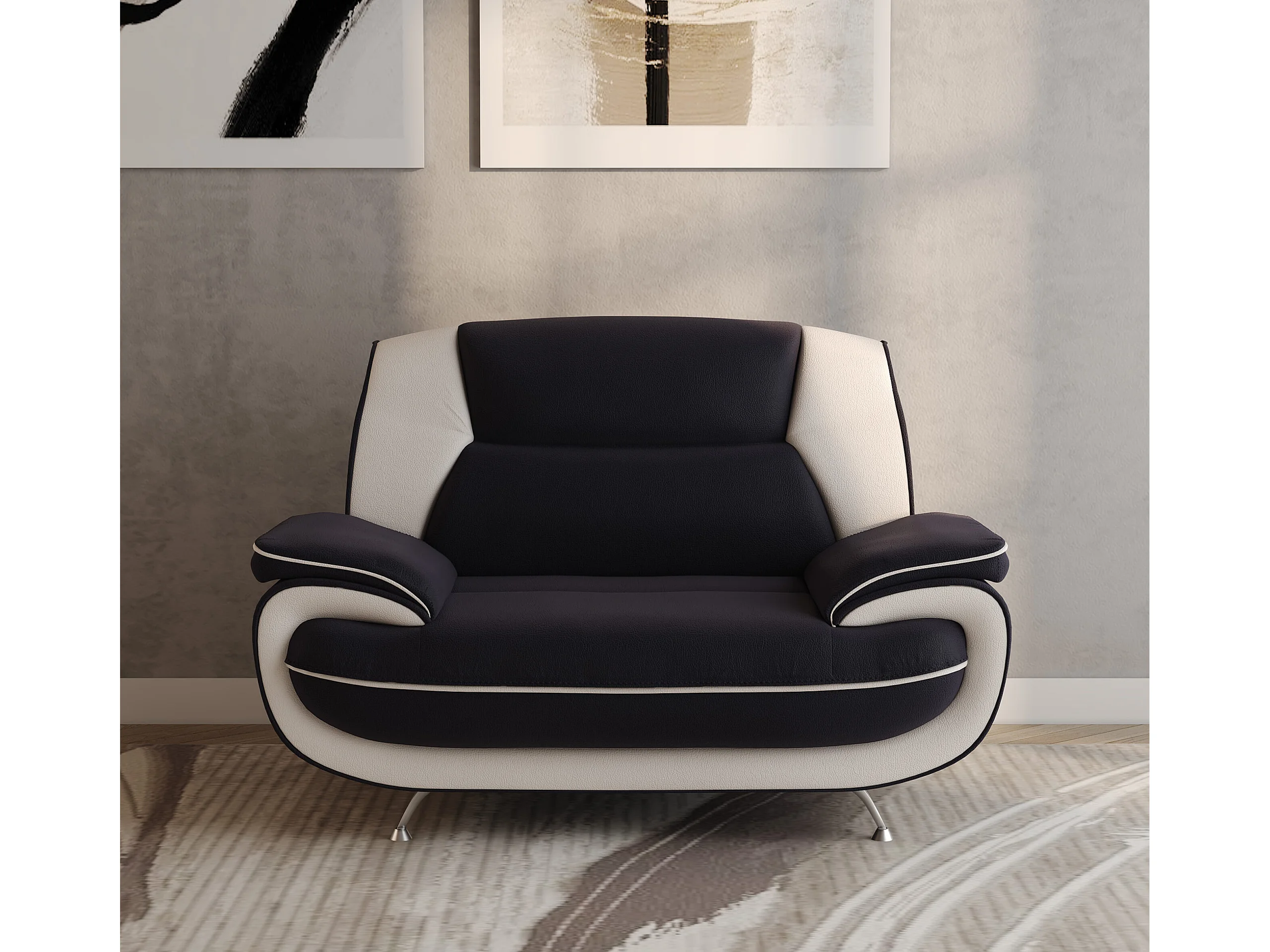 Nowoczesny fotel do salonu, tkanina Soft, czarno-biały, Palermo