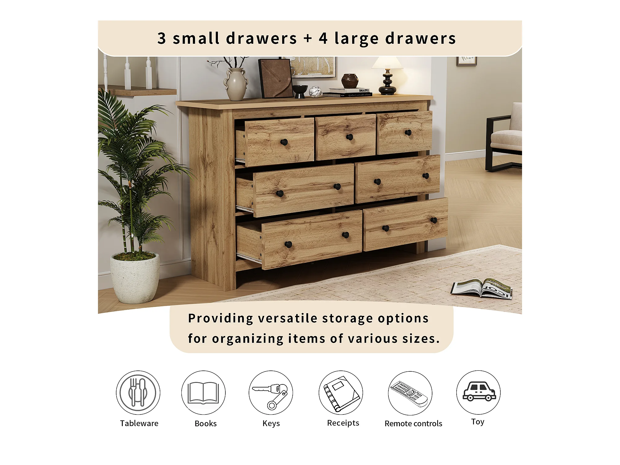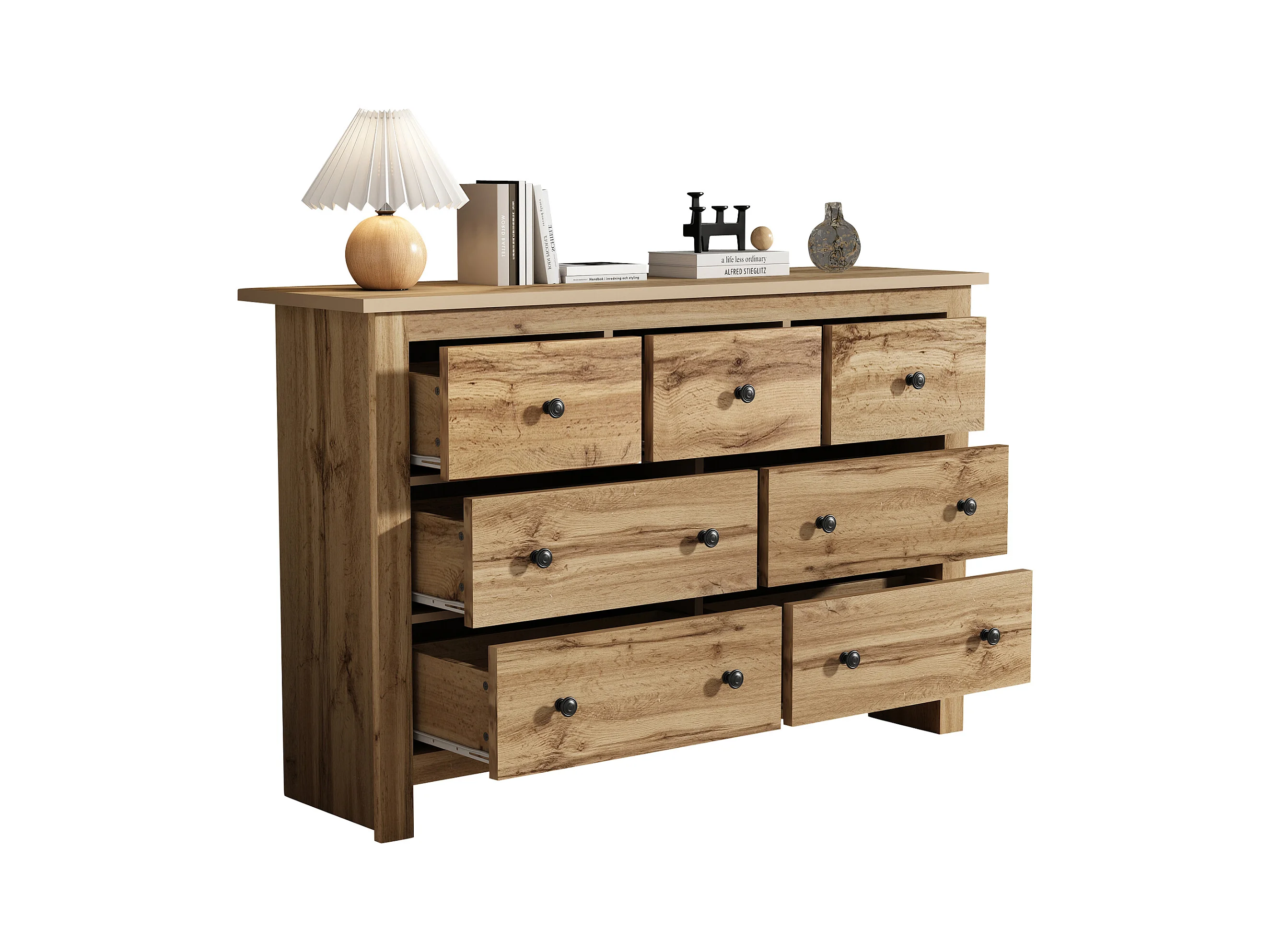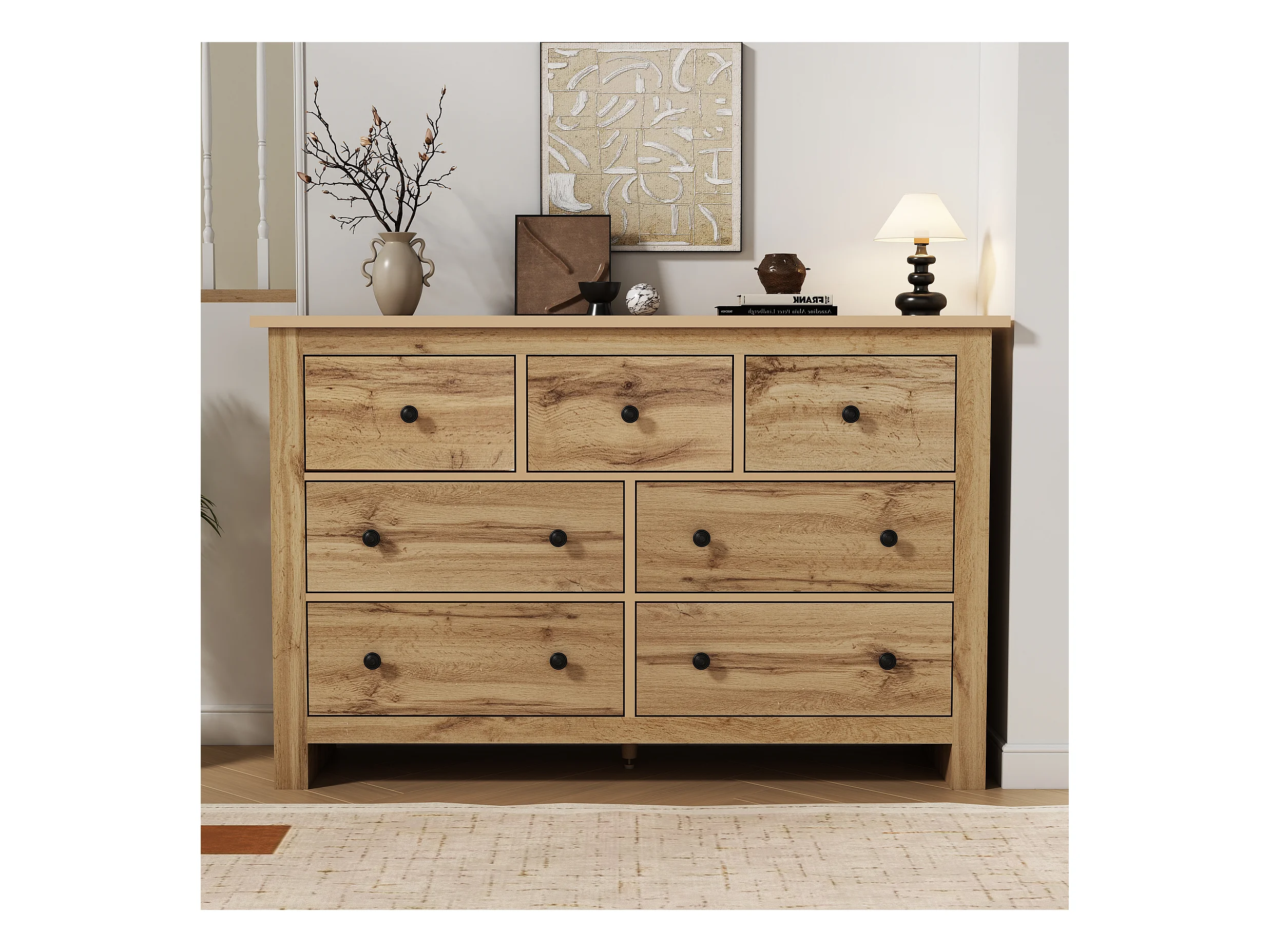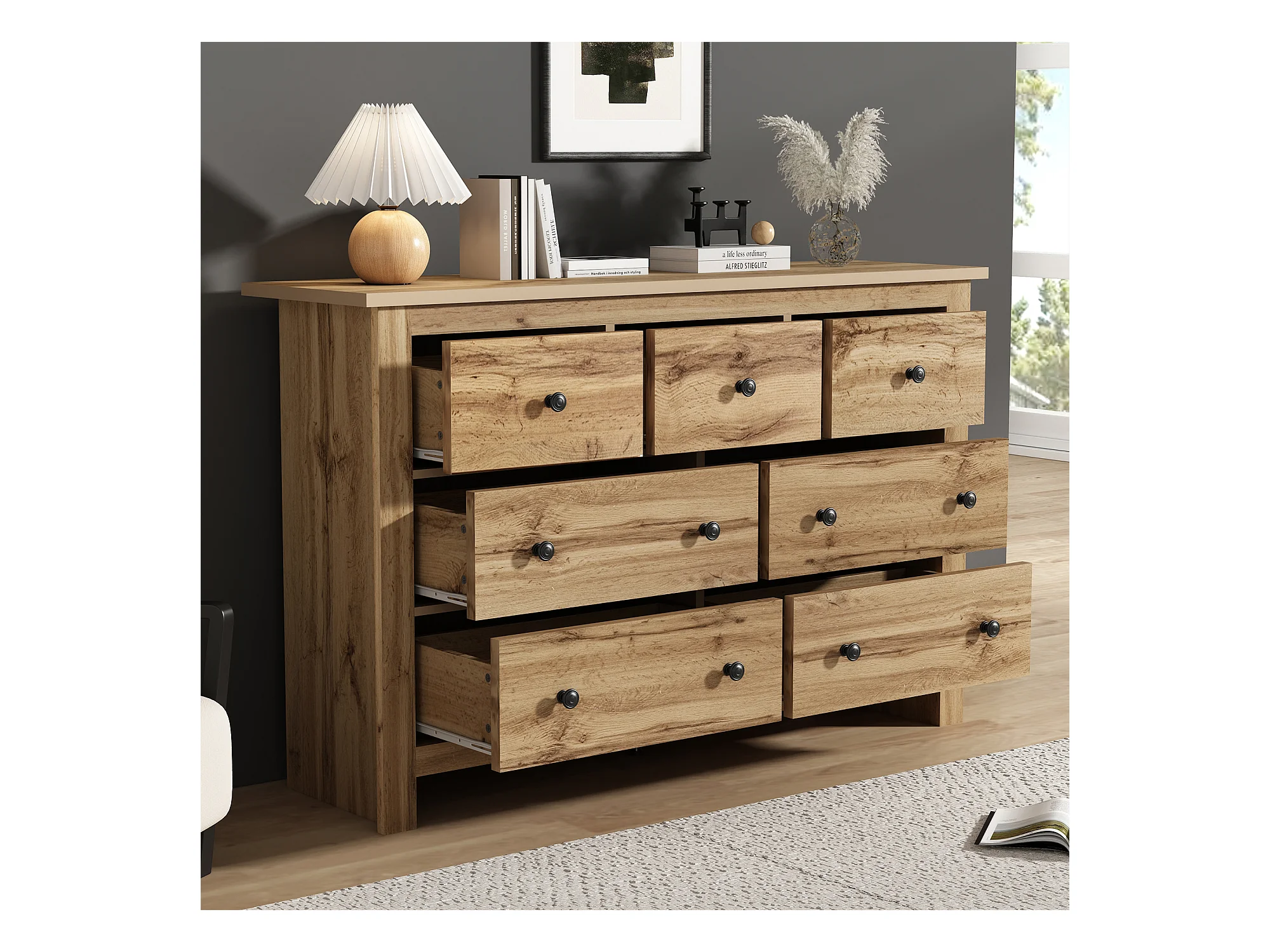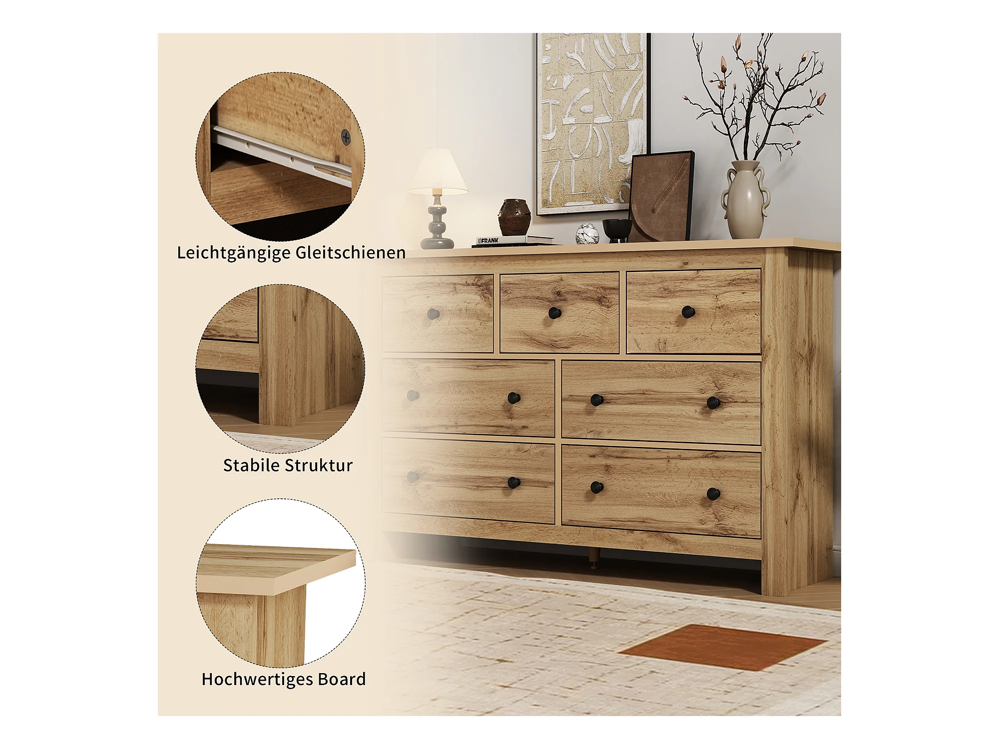 Nowoczesny kredens z 7 szufladami - 152 x 40 x 89 cm - Płyta wiórowa - do jadalni - Kolor drewna