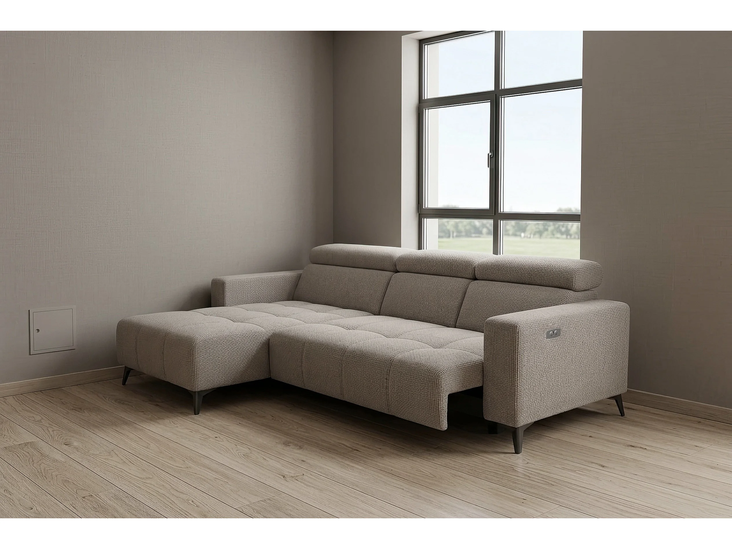 Nowoczesny narożnik Nicolette z elektryczną funkcją relax