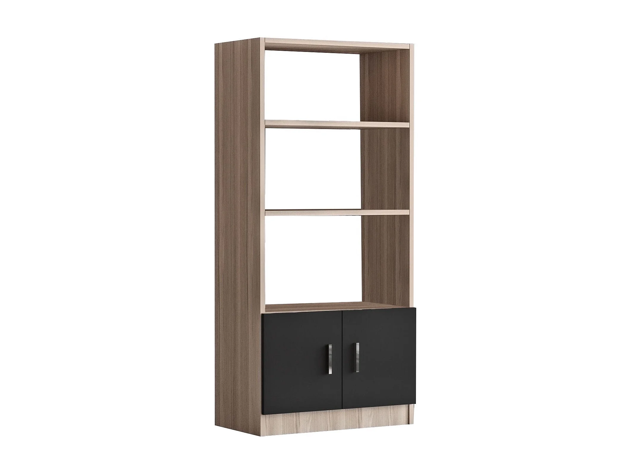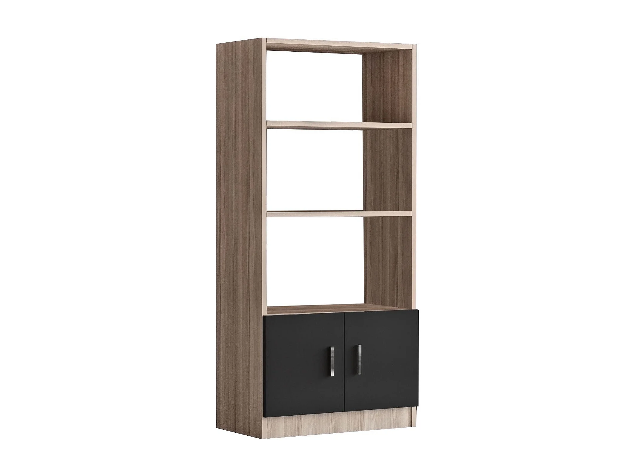 Nowoczesny regał na książki – 90 x 180 x 20 cm – orzech i czerń – płyta wiórowa pokryta melaminą