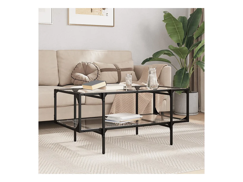 Nowoczesny Stolik Kawowy z Przezroczystym Szkłem 98,5x50x41cm Stal