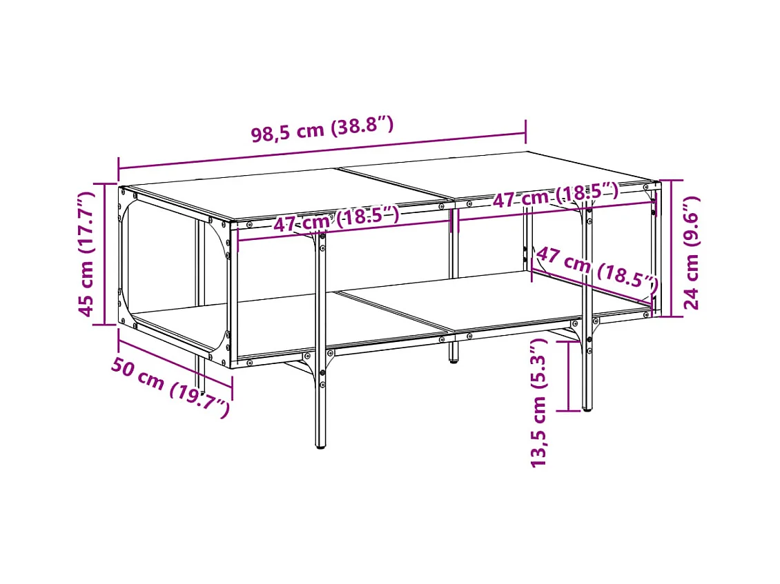 Stolik kawowy Sonoma szary z dużą przestrzenią do przechowywania z drewna inżynieryjnego 100x50x45 cm