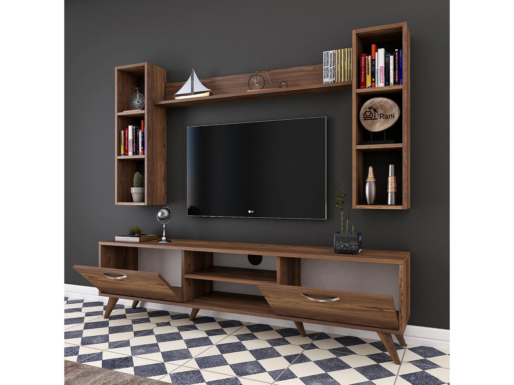 Stojak pod TV – 180 cm – Orzech i trawertyn – Melamina