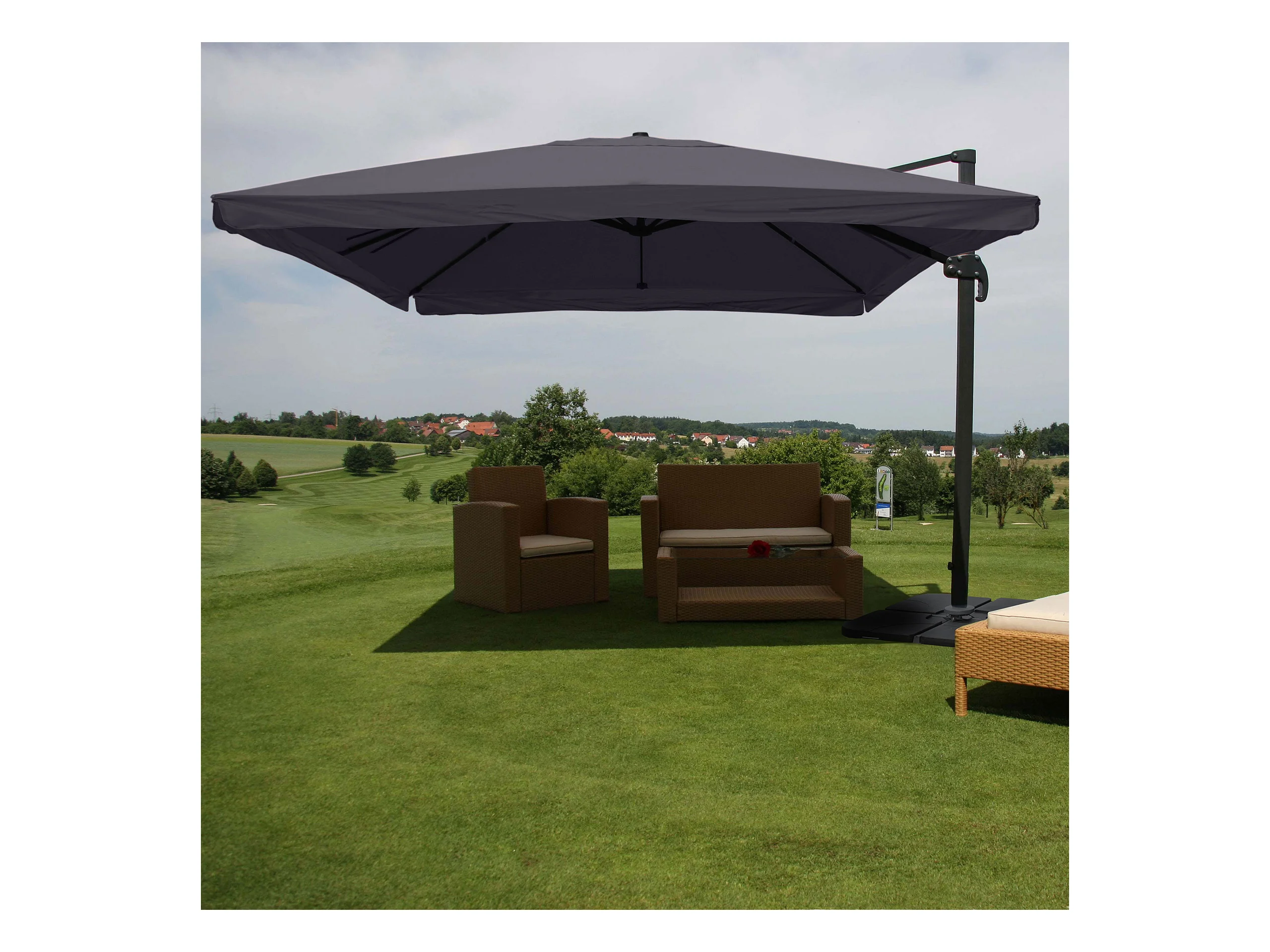 Obrotowy parasol wspornikowy MCW-A96 III, Klapa, antracyt ze stojakiem, obrotowy