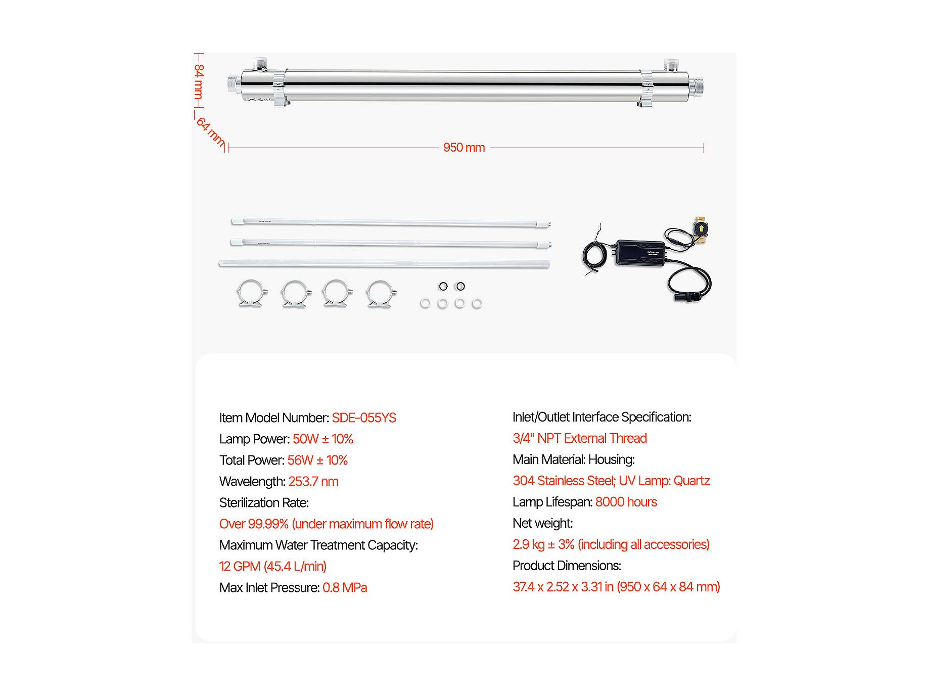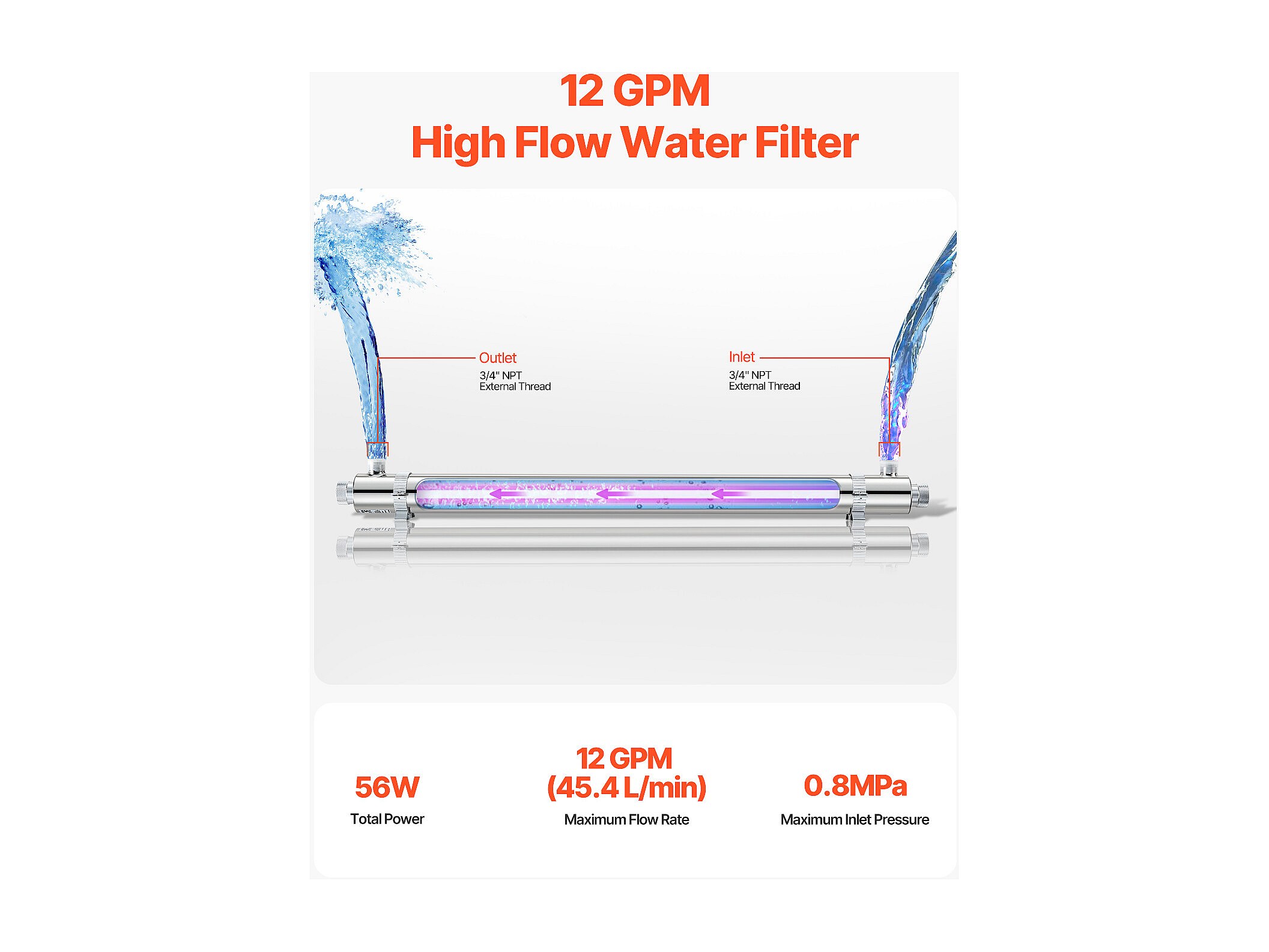 Oczyszczacz Wody UV SucceBuy, 45,4 l/min Dla Czystej Wody Pitnej