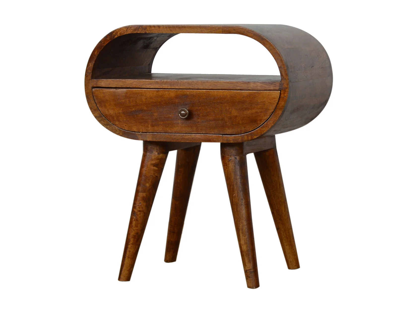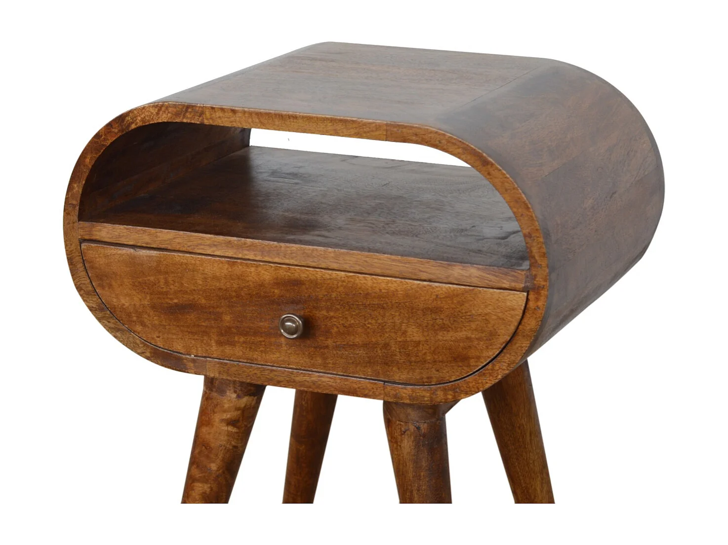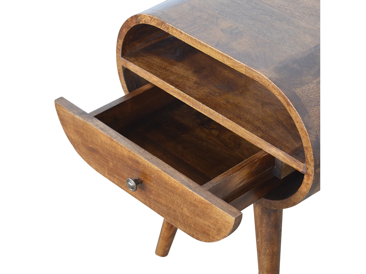 Dodatkowa mini szafka nocna Chestnut z zakrzywionym blatem i otwartą przegródką