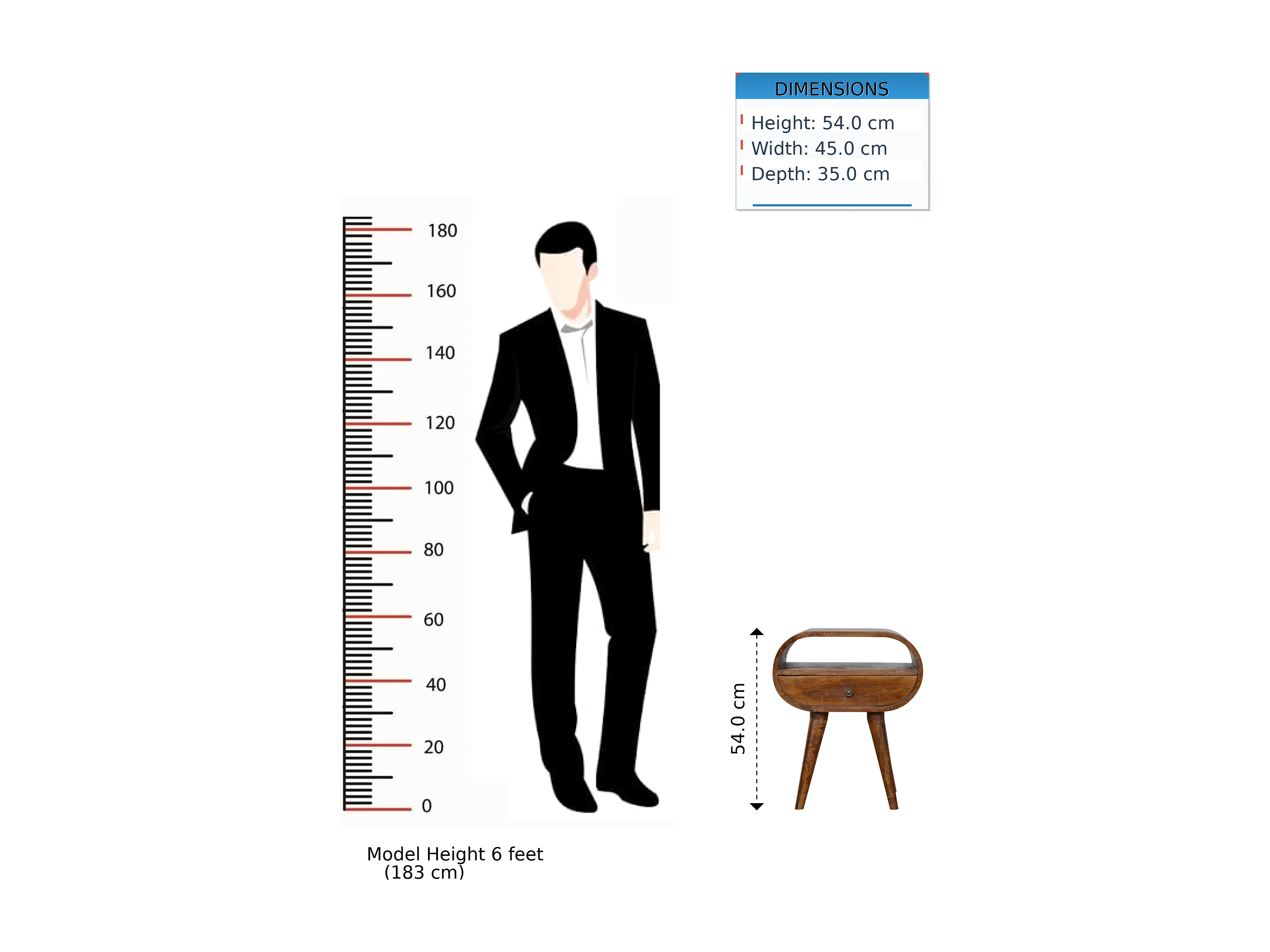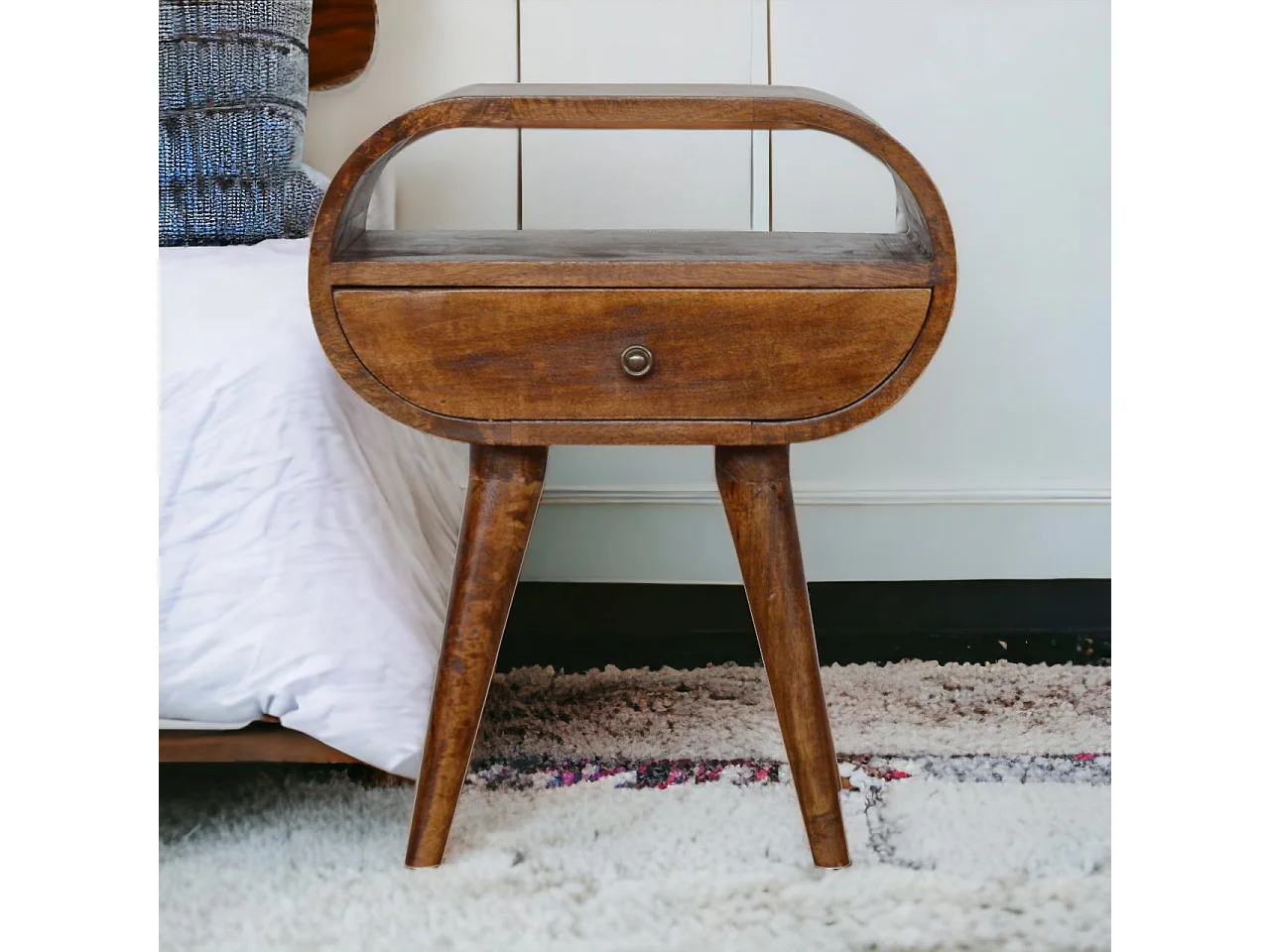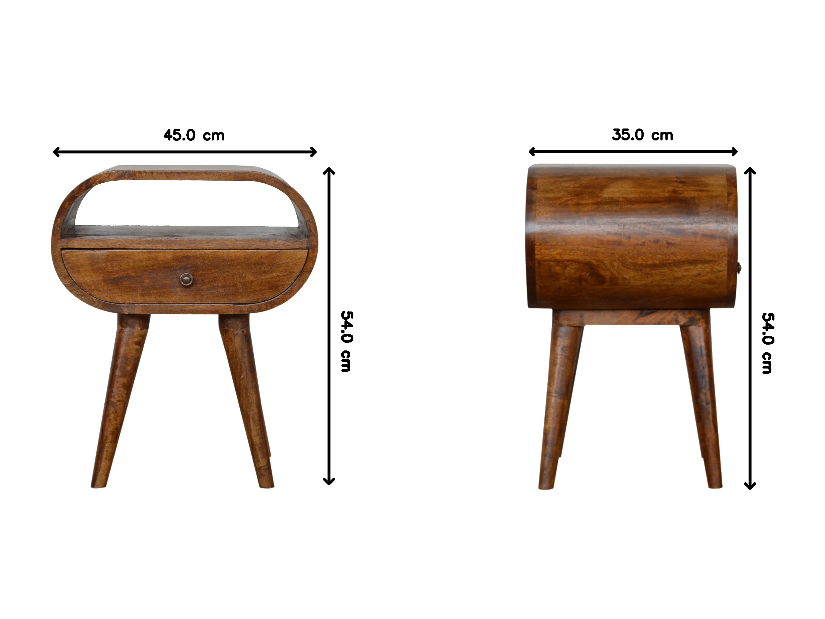 Dodatkowa mini szafka nocna Chestnut z zakrzywionym blatem i otwartą przegródką