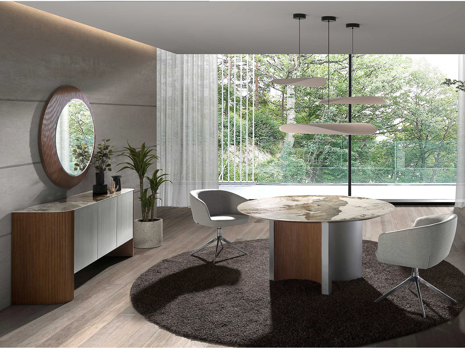 Okrągłe lustro ścienne z orzecha włoskiego 3262 ANGEL CERDA