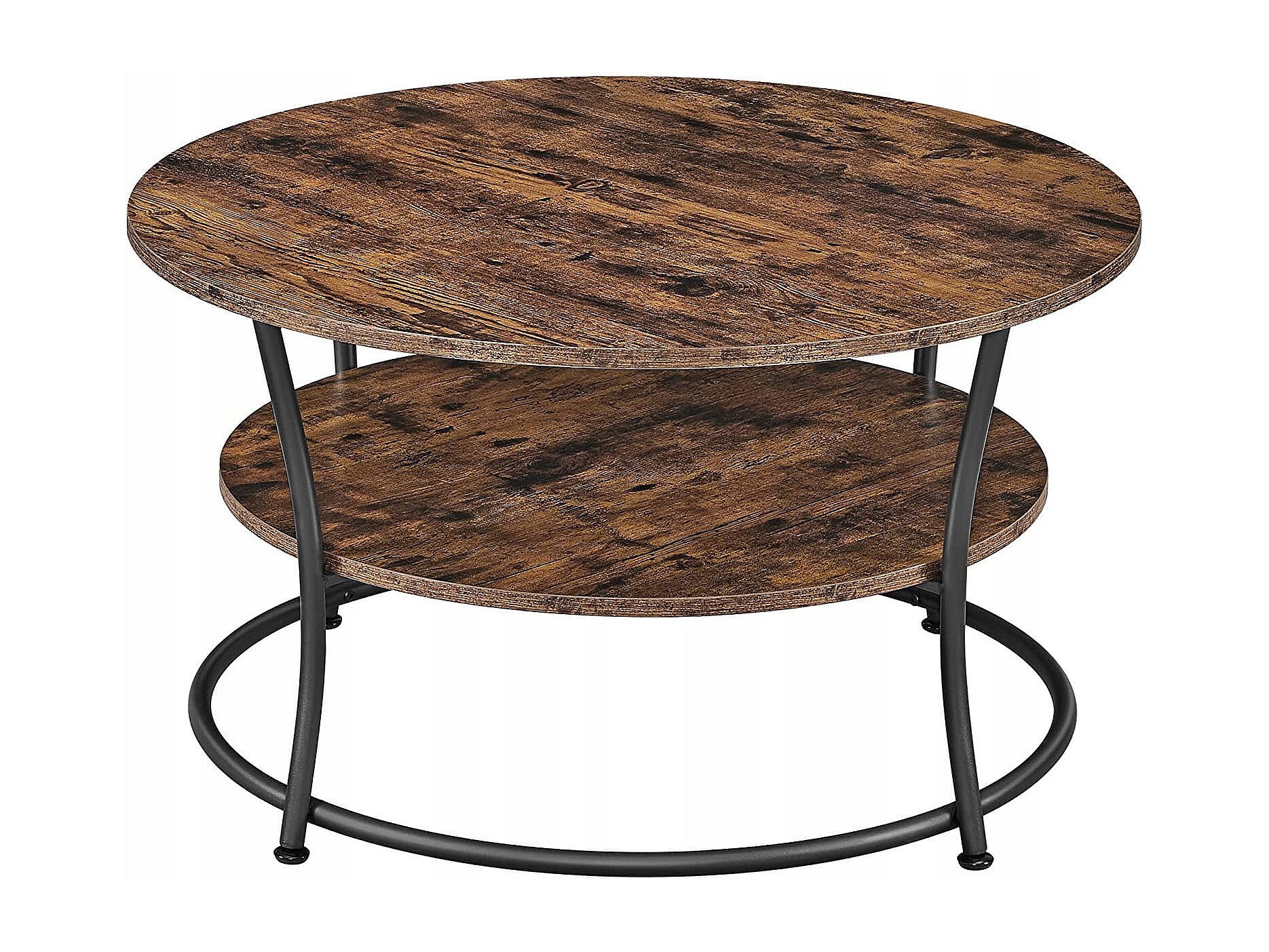 Okrągły stolik kawowy Valora w stylu rustykalnym, brązowy, w stylu loft z półką