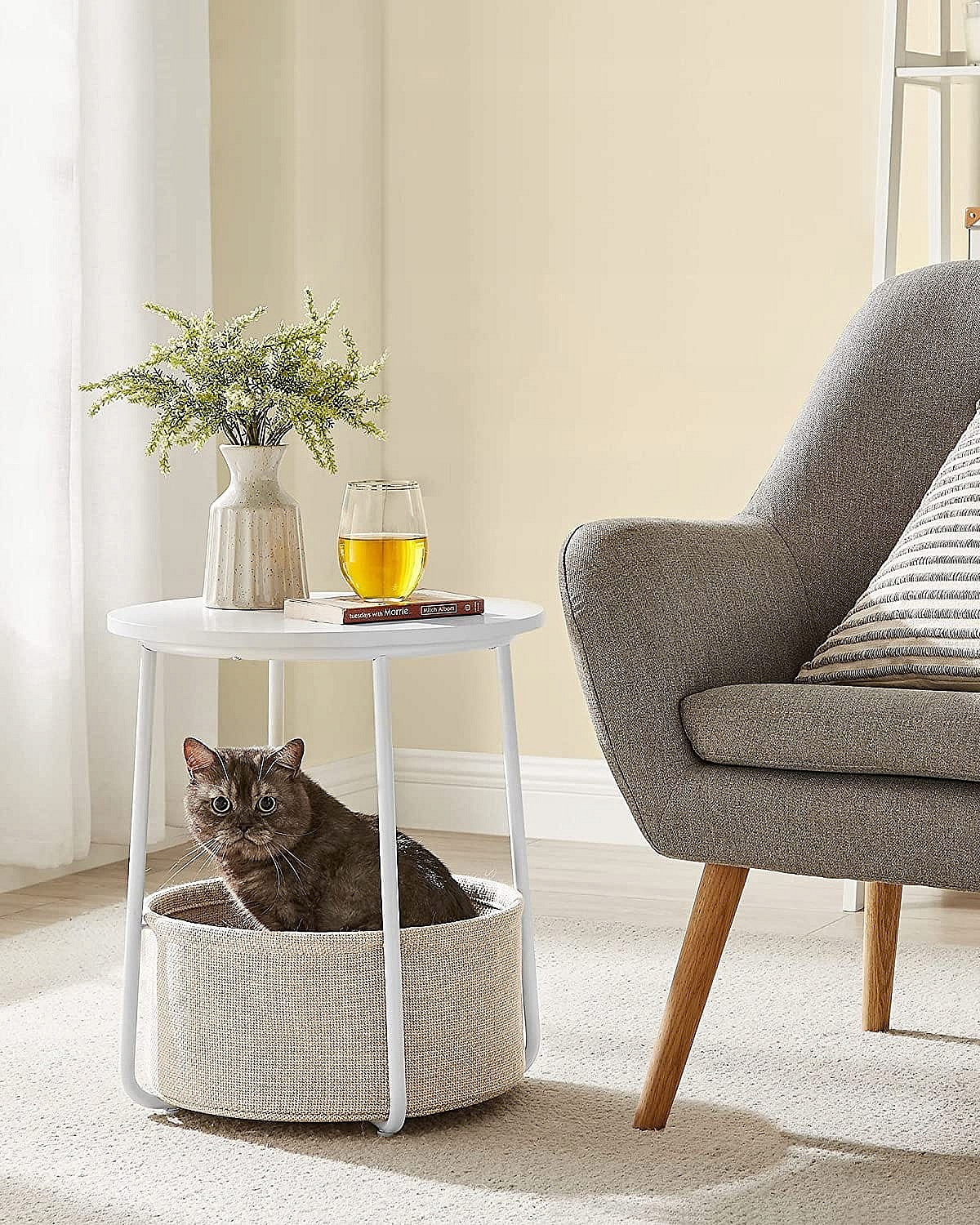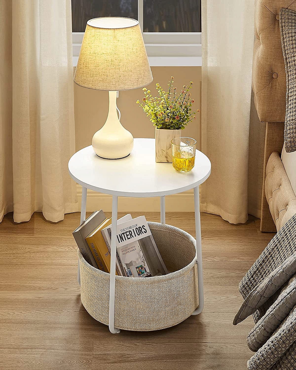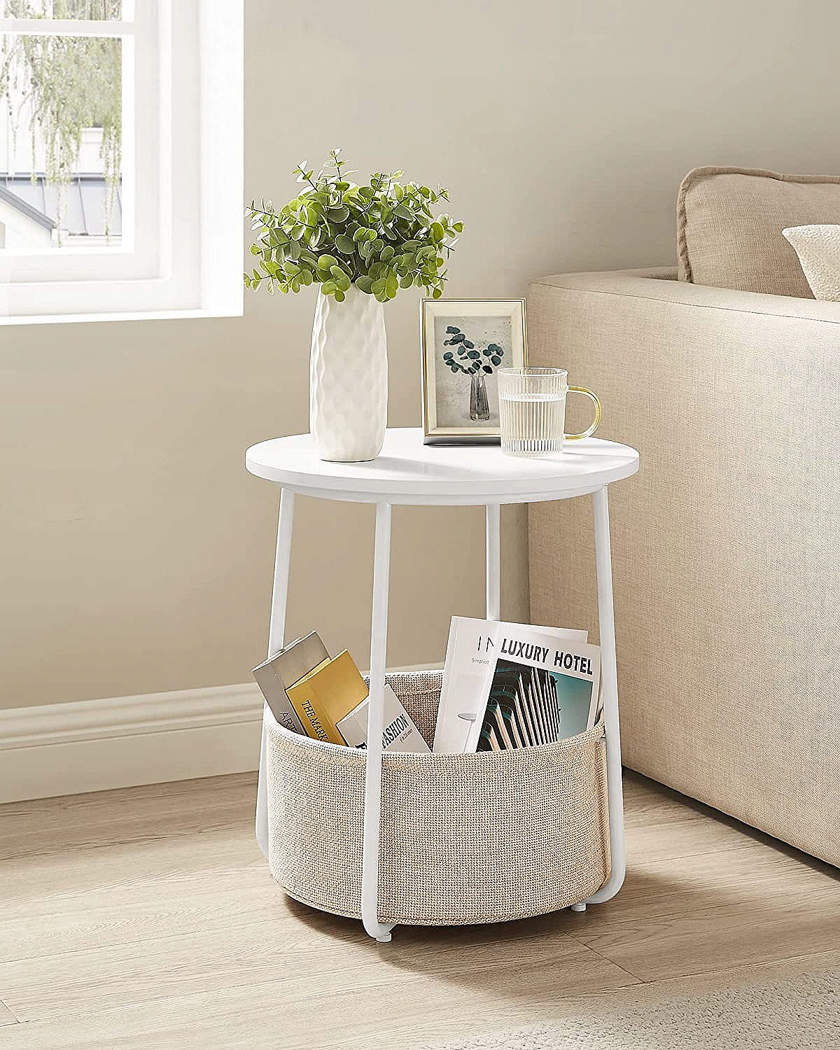Okrągły stolik kawowy Valora z koszykiem, biały