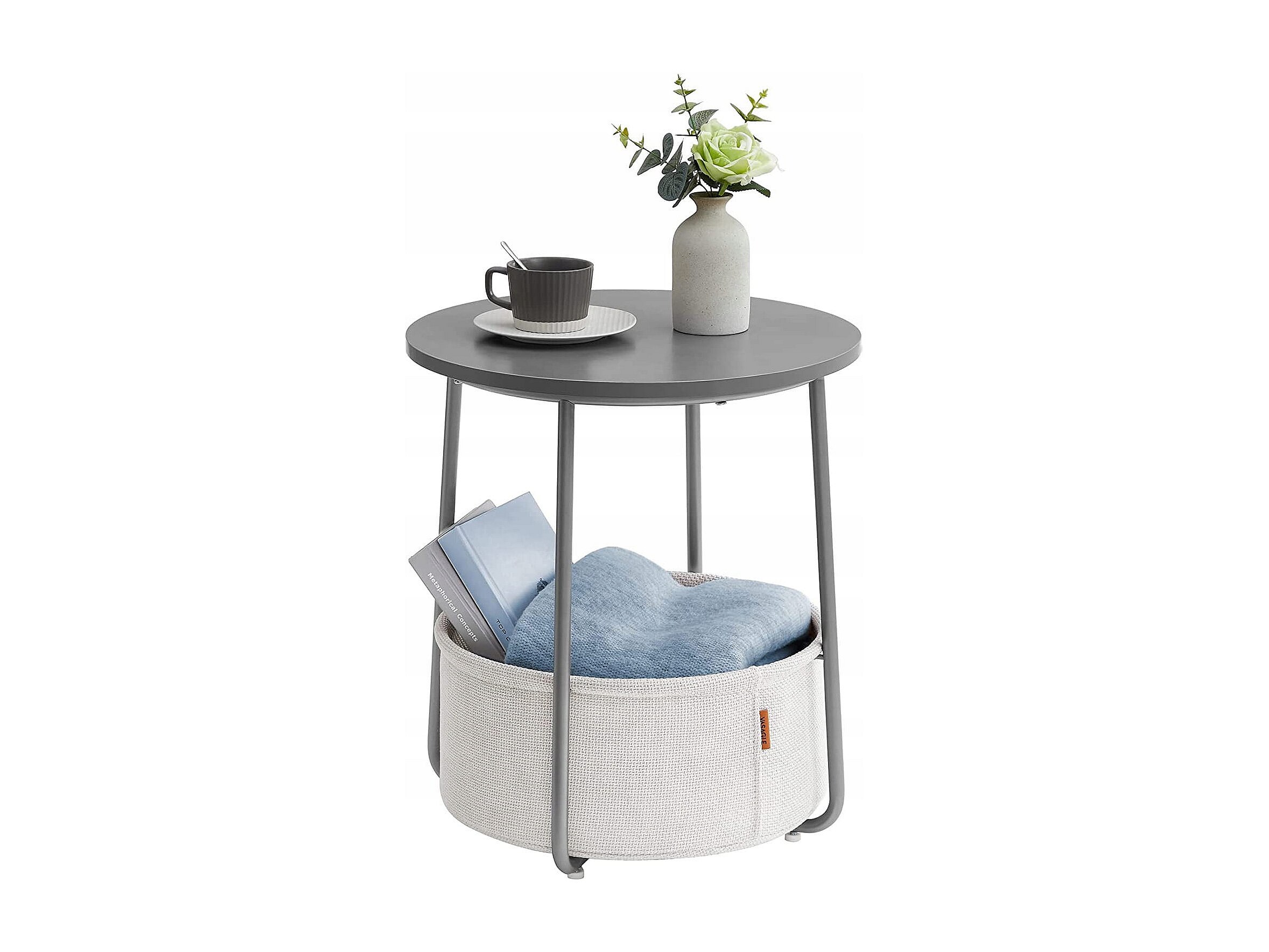 Okrągły stolik kawowy Valora z koszykiem, szary | kompaktowy i nowoczesny