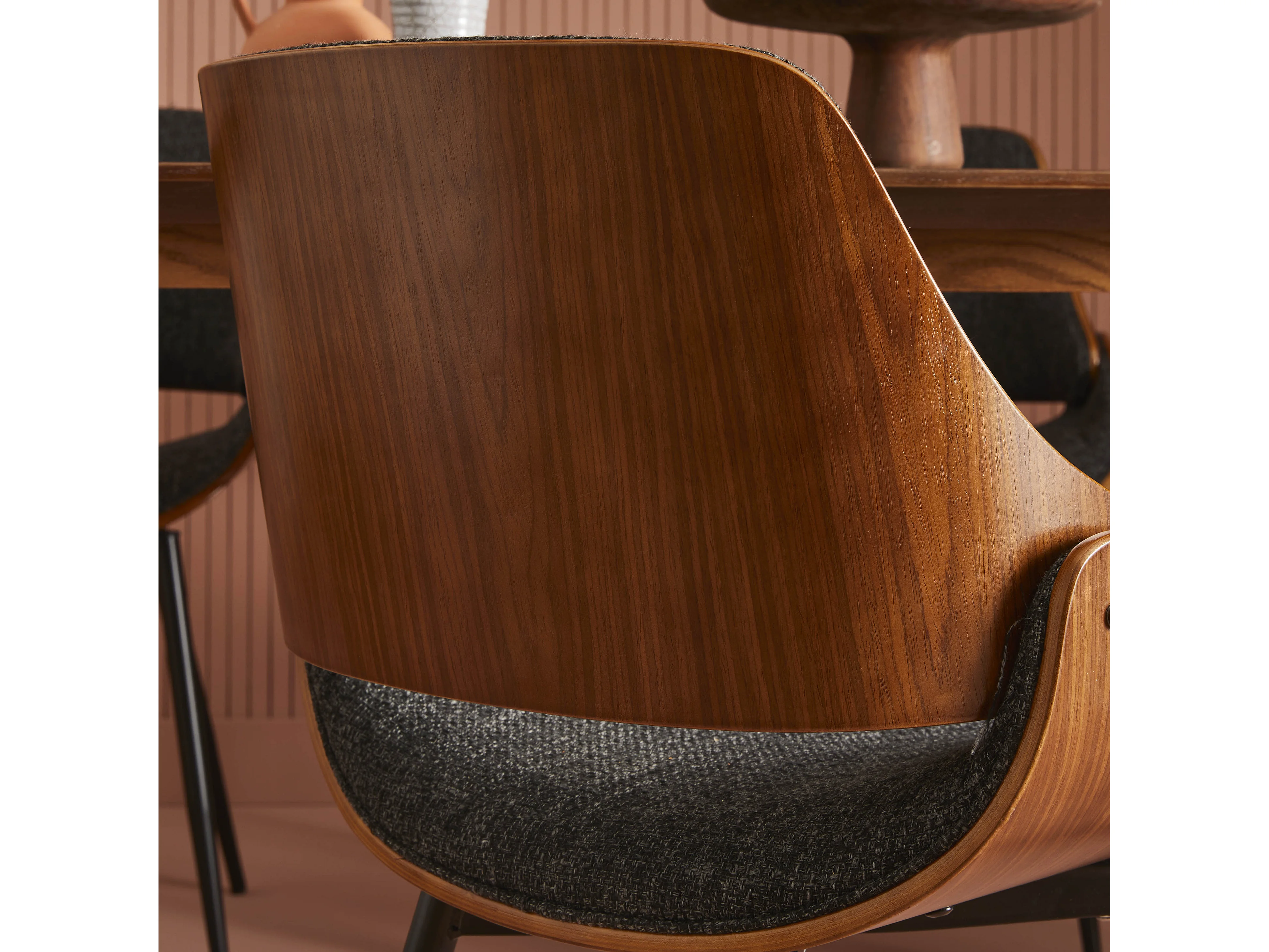 Orzechowe krzesło z szarym siedziskiem z tkaniny - Mannix