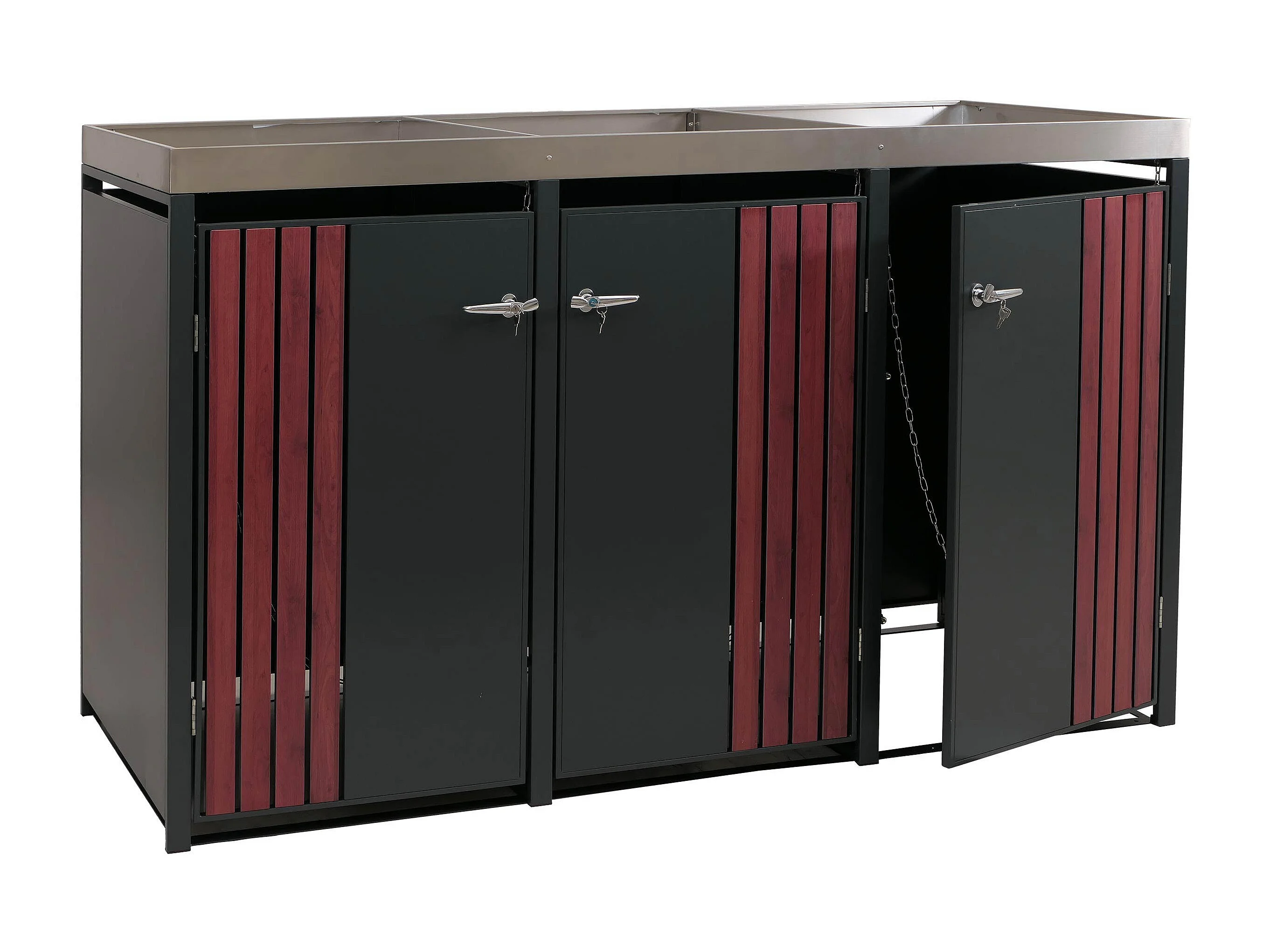 Osłona na trzy pojemniki na śmieci MCW-O67, antracytowy wygląd drewna ciemny