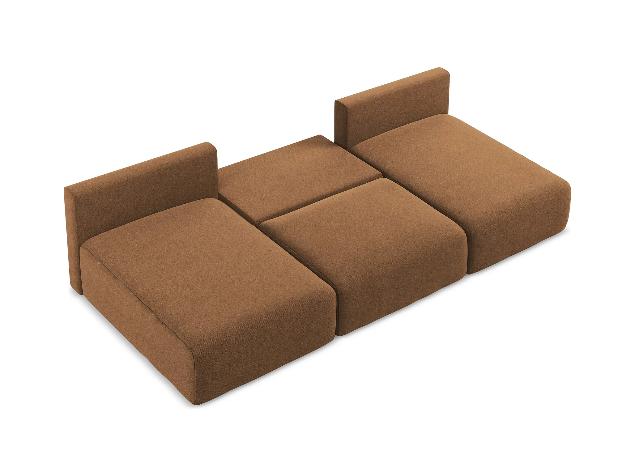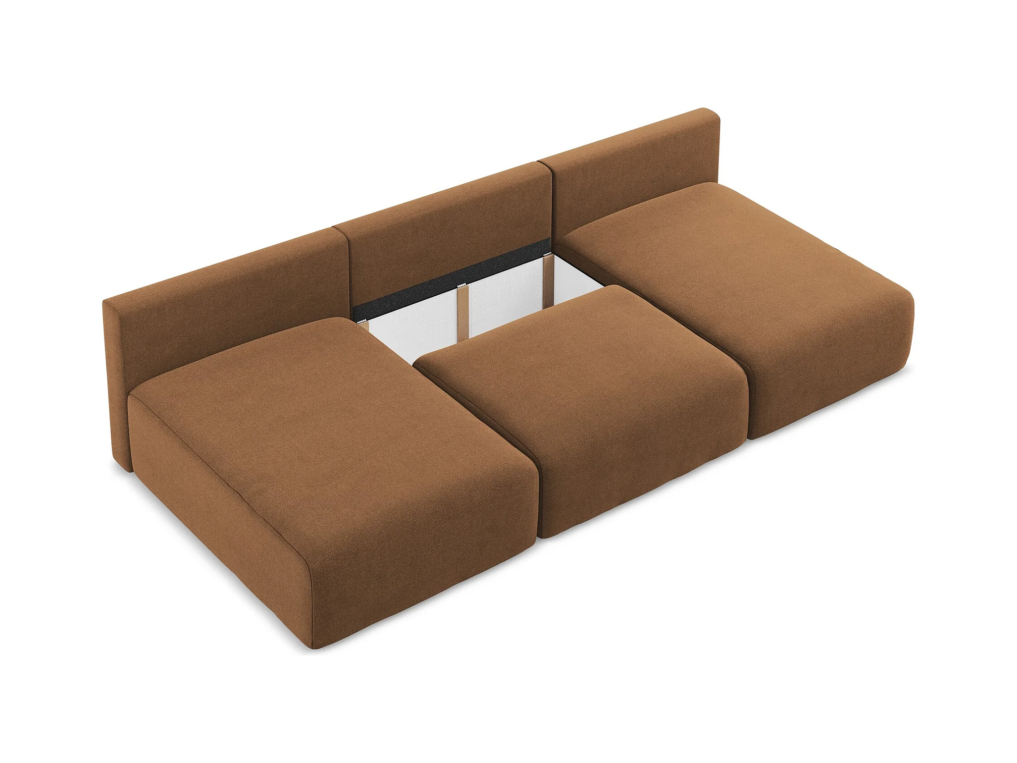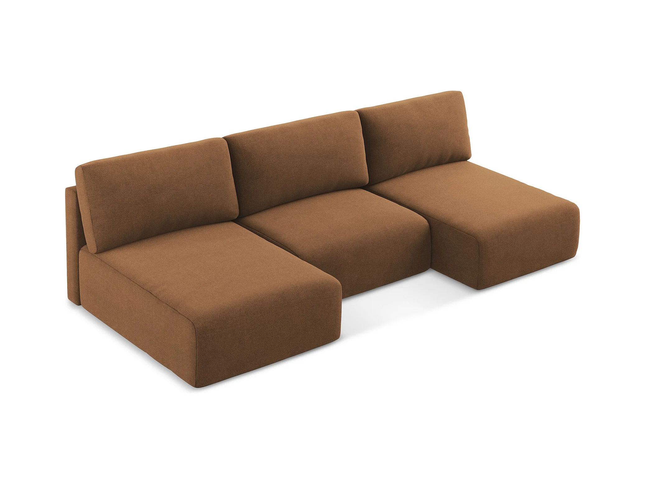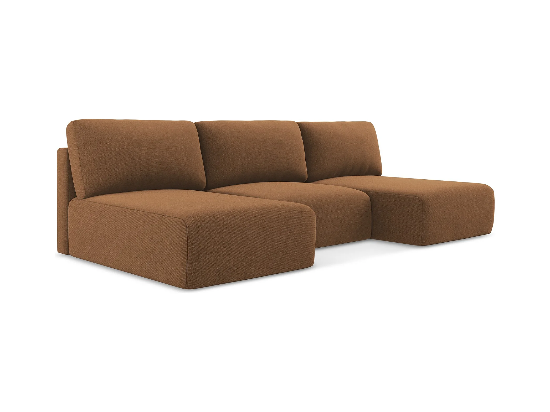 Sofa panoramiczna z funkcją spania - z tkaniny strukturalnej - terakota - KONA