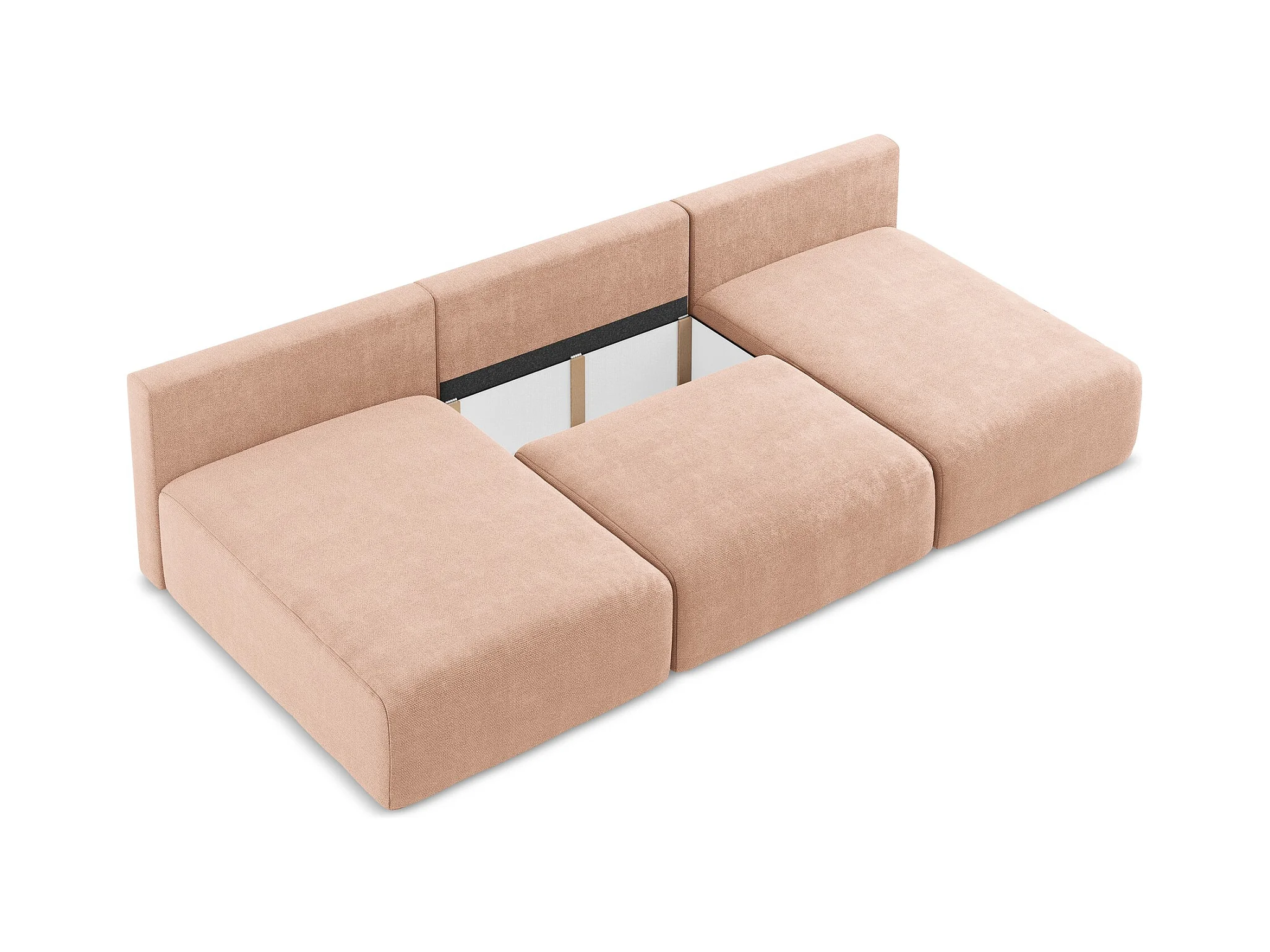 Otwarta Sofa 3-osobowa z funkcją spania - z tkaniny strukturalnej - pudrowy róż - KONA