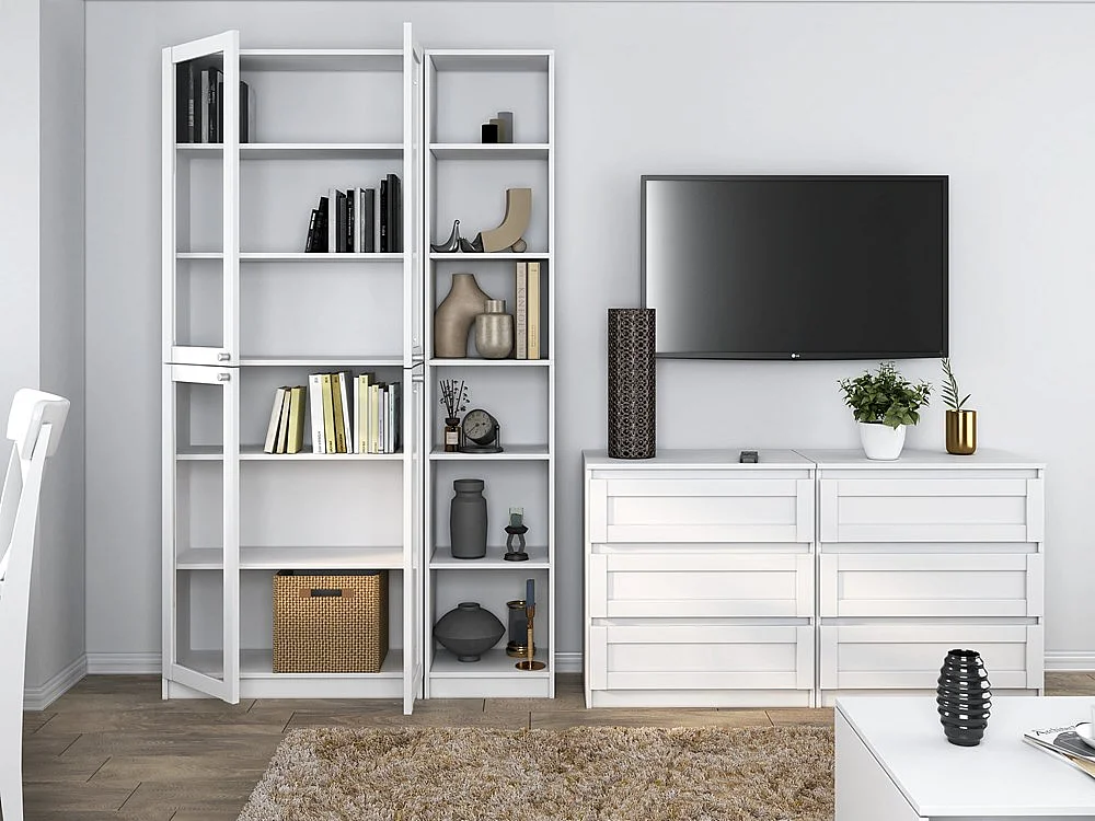 Biała witryna Dancan EVA ze szklanymi drzwiami / połysk