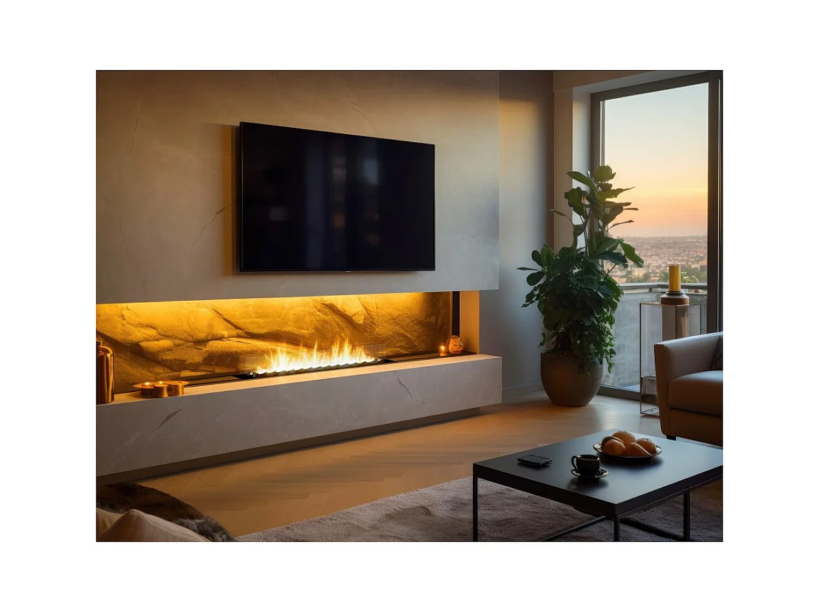 Wkład Czarny 1200 Wbudowany lub wolnostojący Biokominek - Smukły Czarny Biokominek z dwoma panelami szklanymi, zbiornik 3L - 120 cm