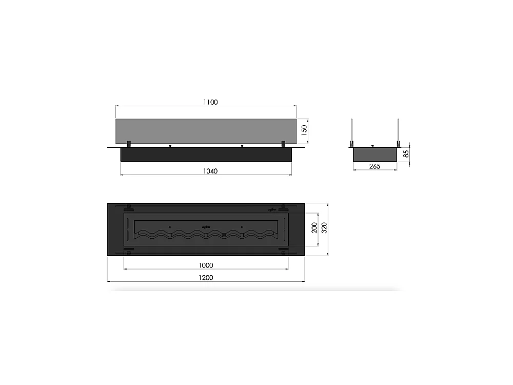 100 cm Wbudowany czarny wkład palnika na bioetanol ze stali nierdzewnej 4L