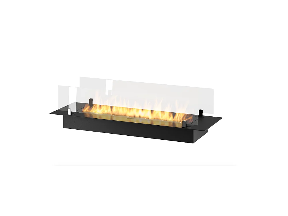 Wkład kominkowy na bioetanol Black 1000 do zabudowy lub wolnostojący – smukły czarny biokominek z podwójnym panelem szklanym, zbiornikiem 2 l – 100 cm