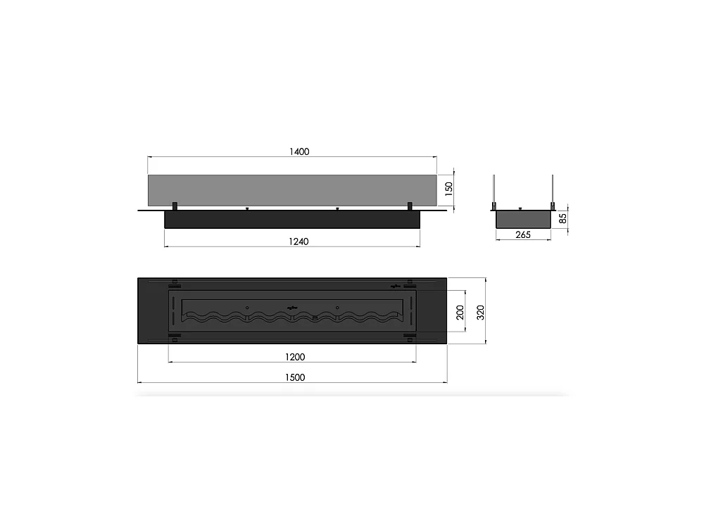 Wkład palnika na bioetanol blat matowy czarny ze stali nierdzewnej 120 cm z grillem