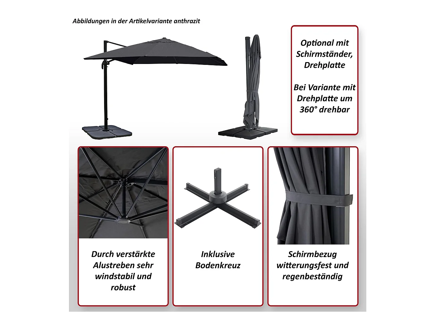 Obrotowy parasol wspornikowy MCW-A96 III, klapa, bordowy bez stojaka, obrotowy