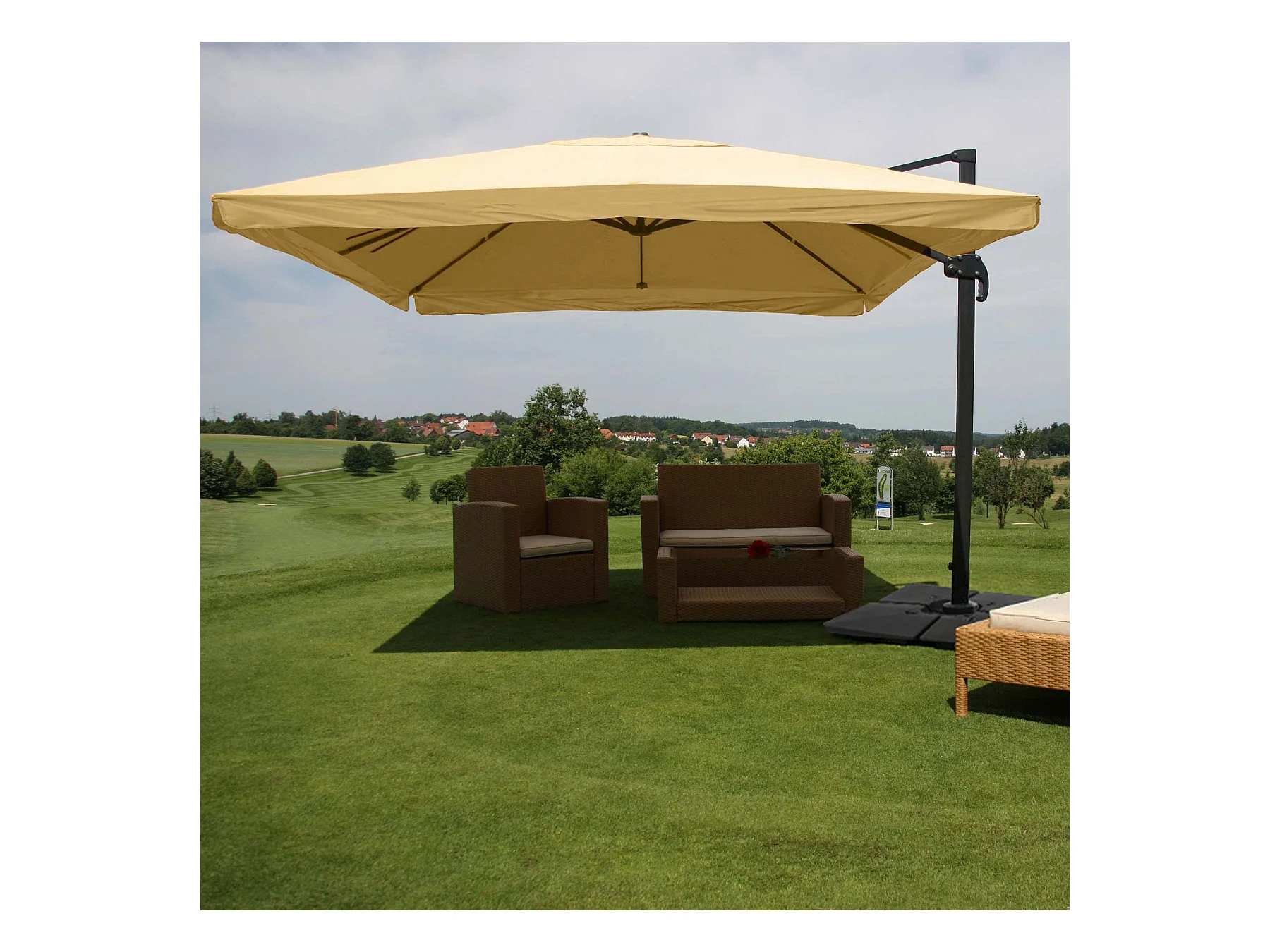Obrotowy parasol wspornikowy MCW-A96 II, kremowy ze stojakiem, obrotowy