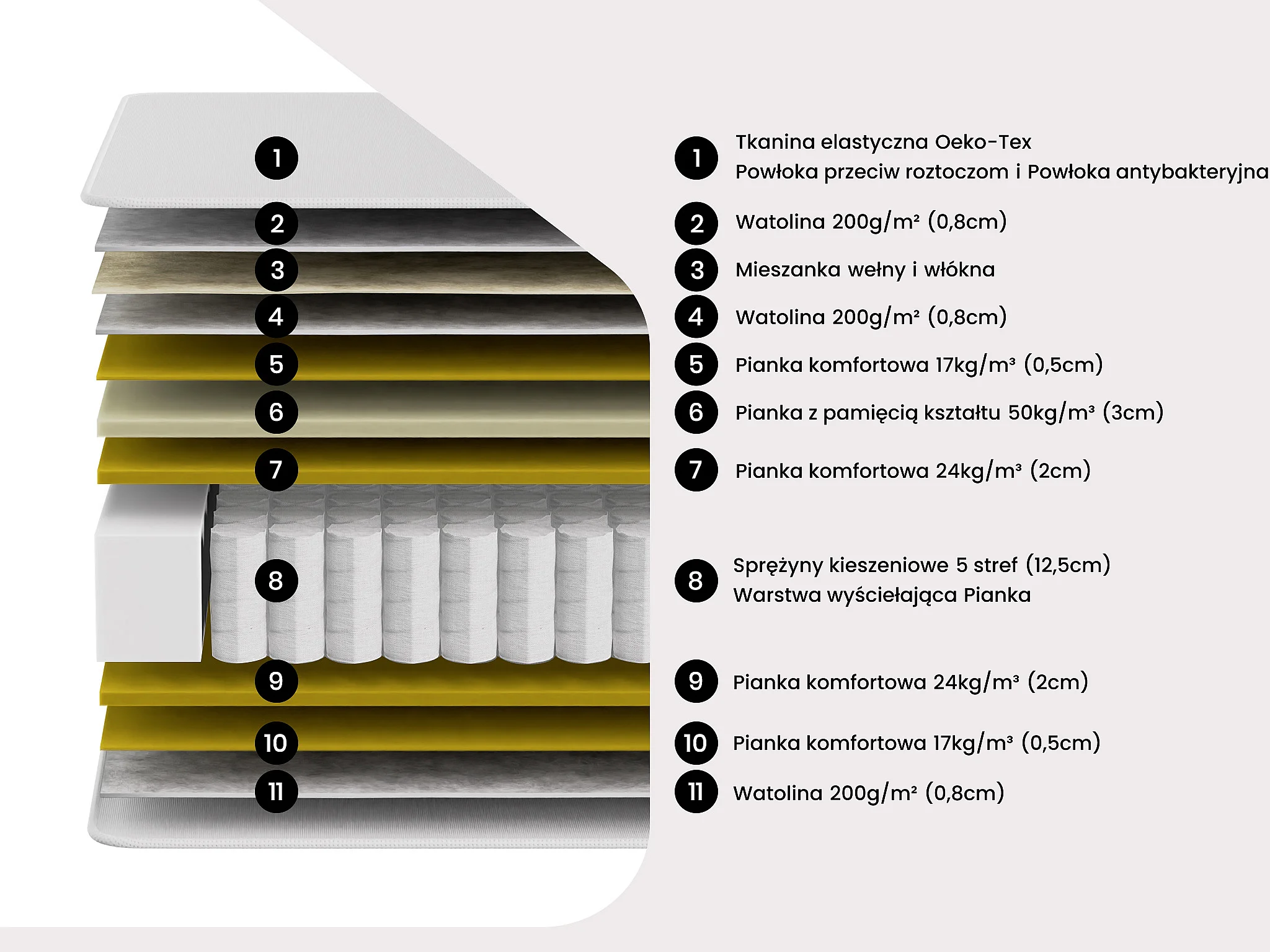 Sprężyny kieszeniowe 5-strefowego komfortu