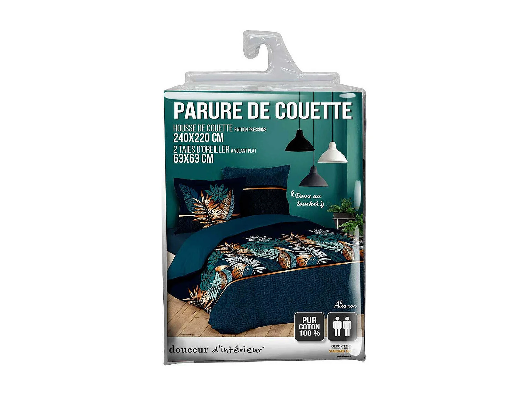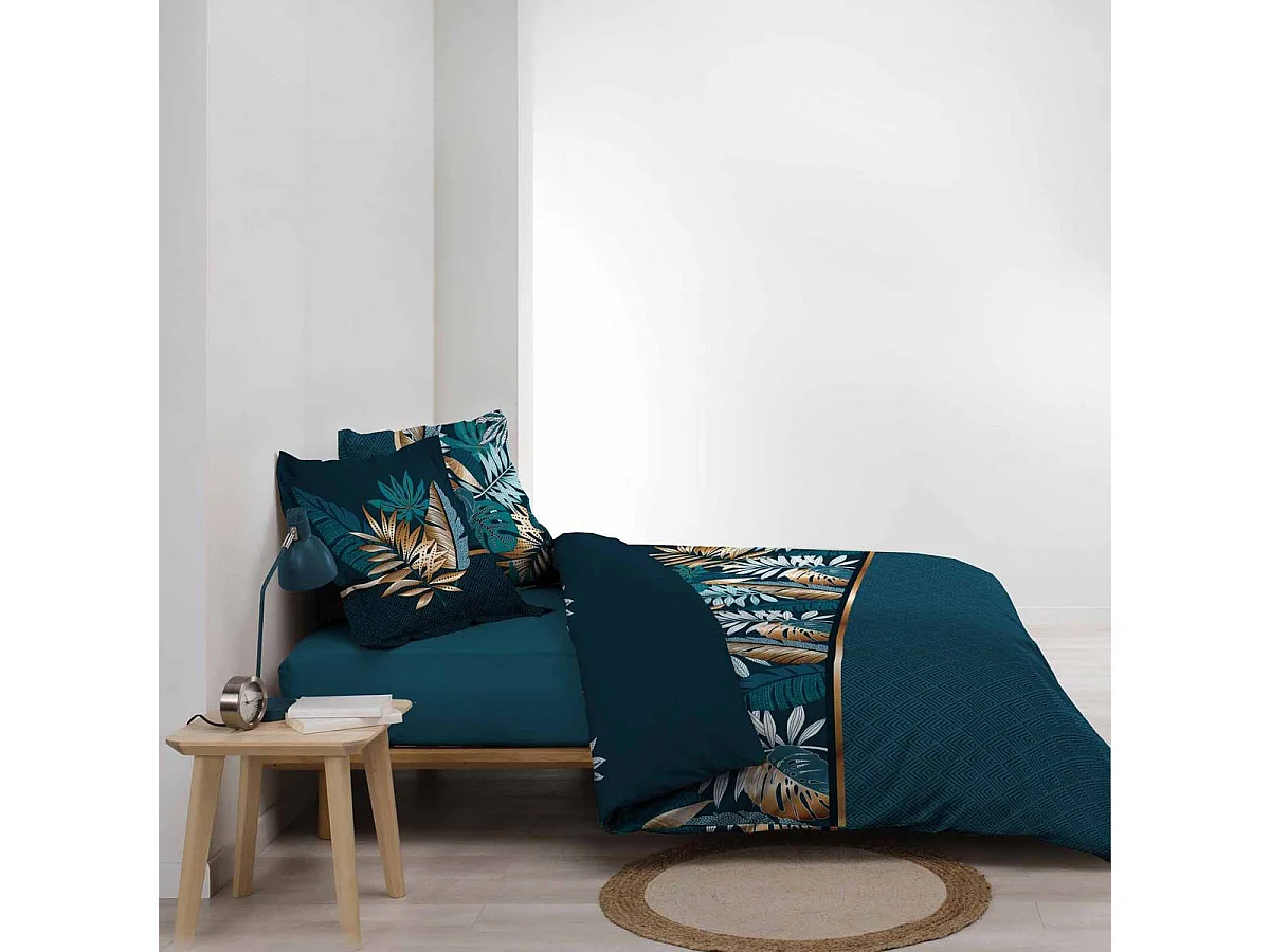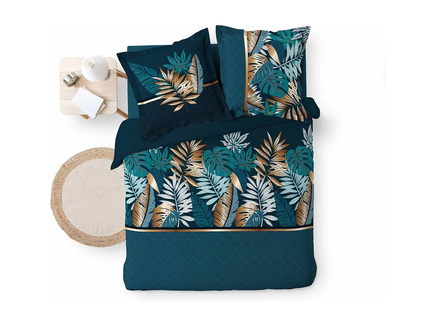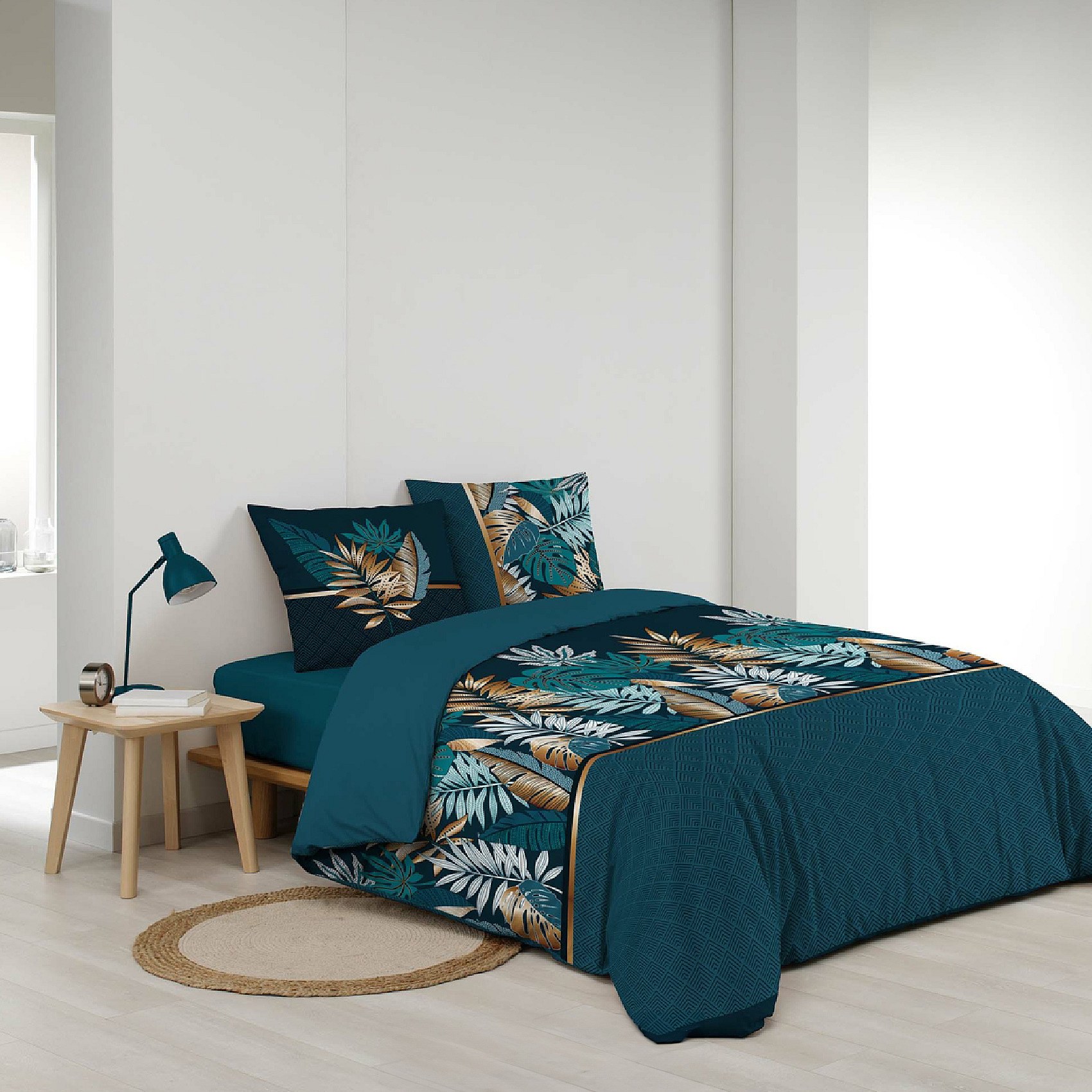 Komplet Pościeli "Alianor" 3 Częściowy 240x220cm Niebieski Tropikalny Elegancki 100% Bawełna