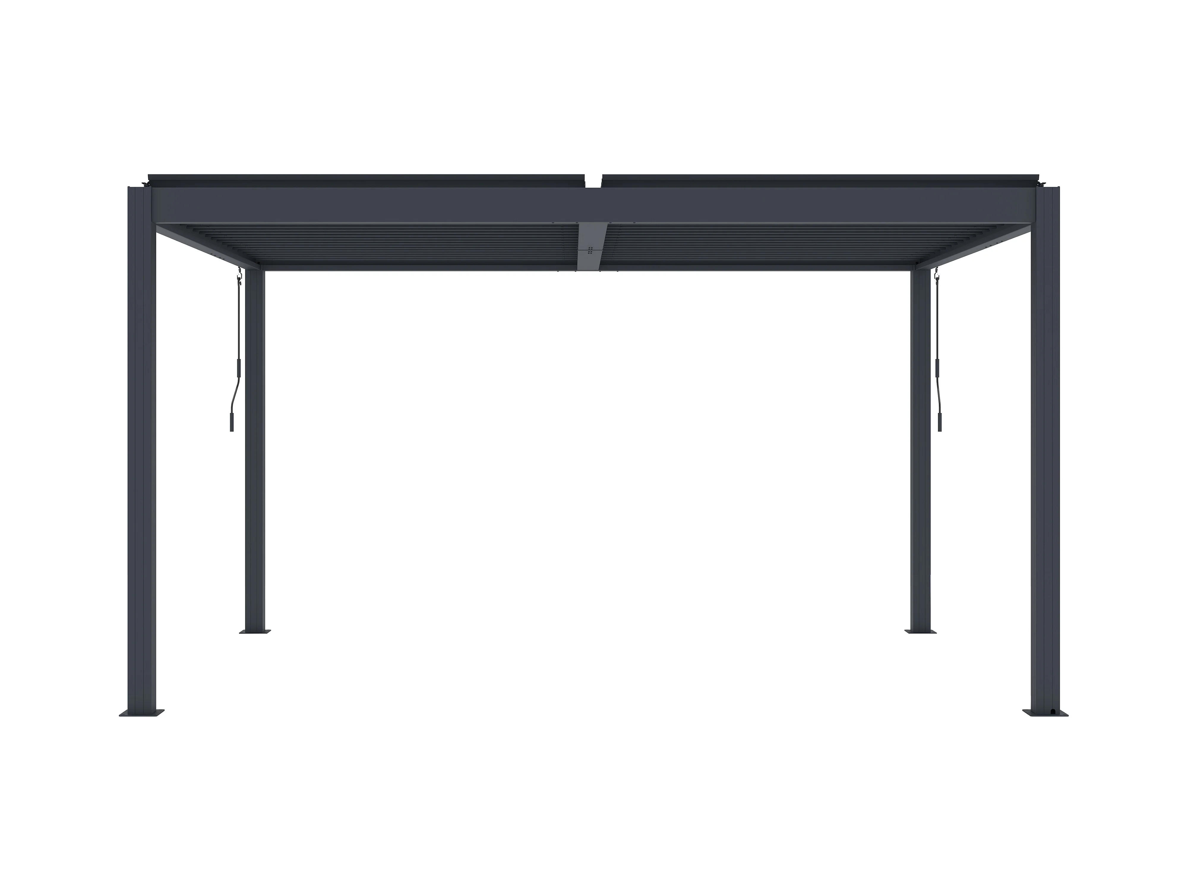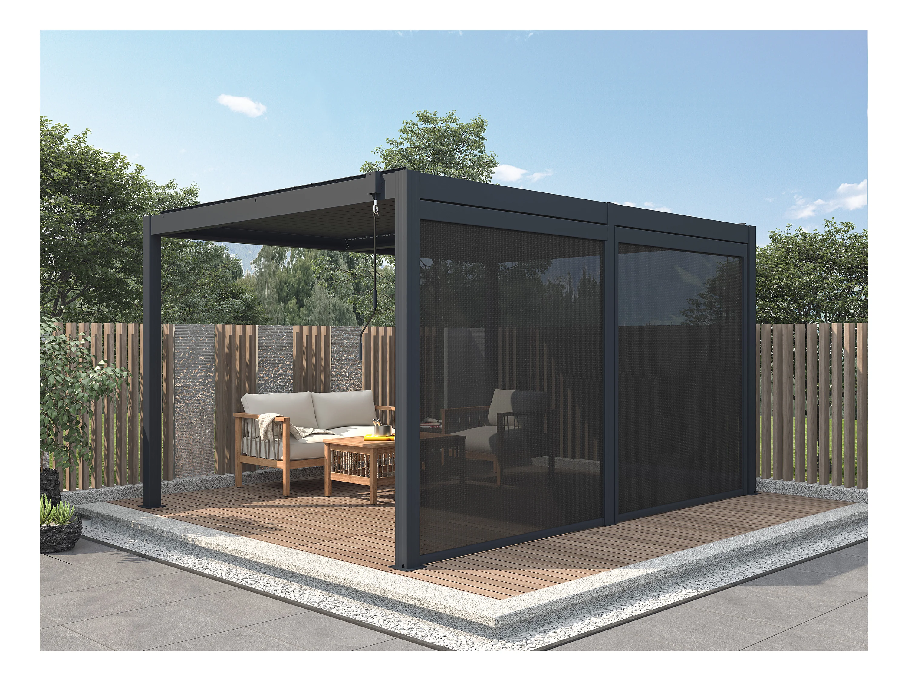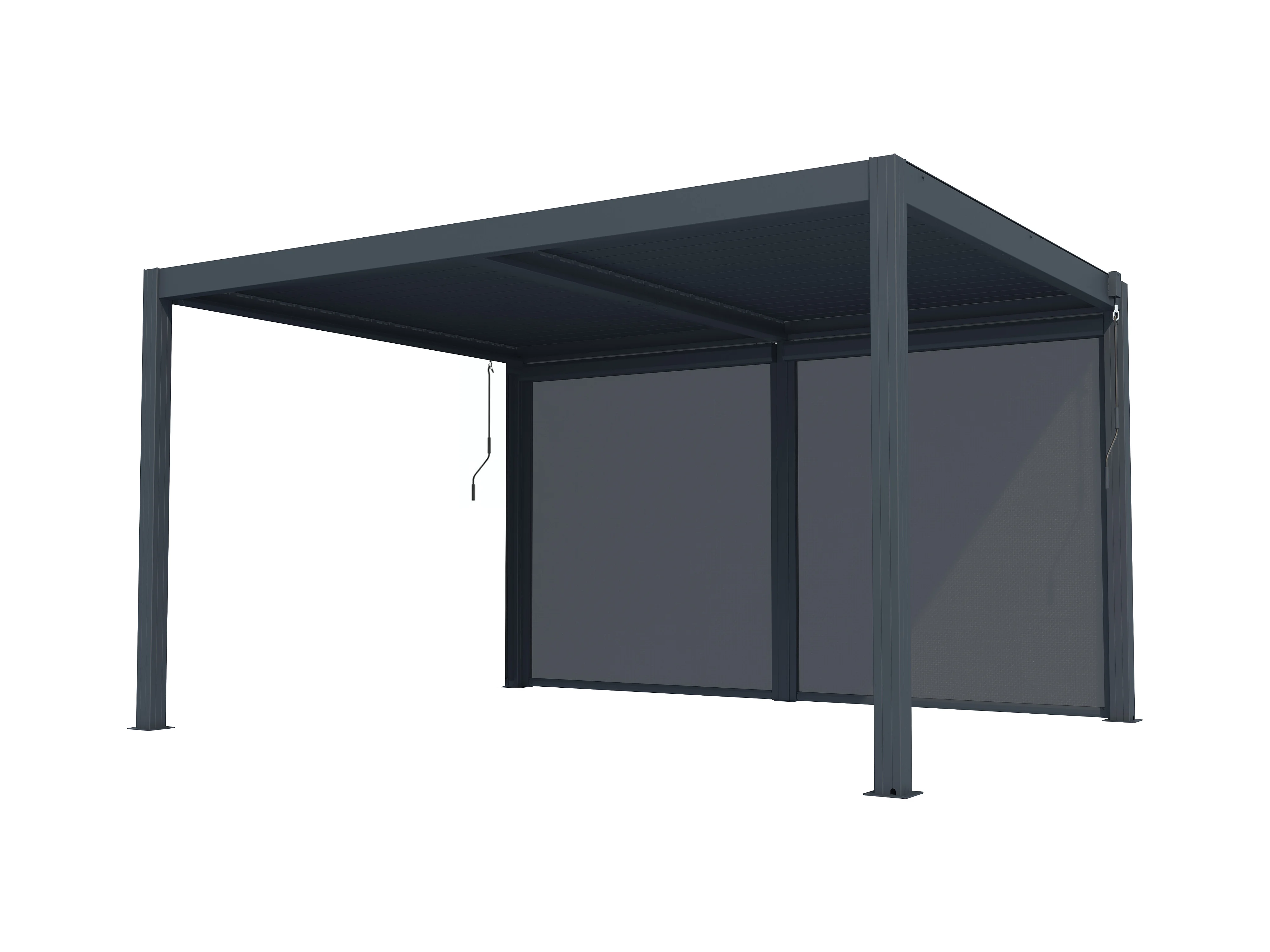 Pergola bioklimatyczna wolnostojąca z antracytowego aluminium z otwieranym dachem i zwijaną roletą szer. 3,67 m - 12 m² - CASSAPIA