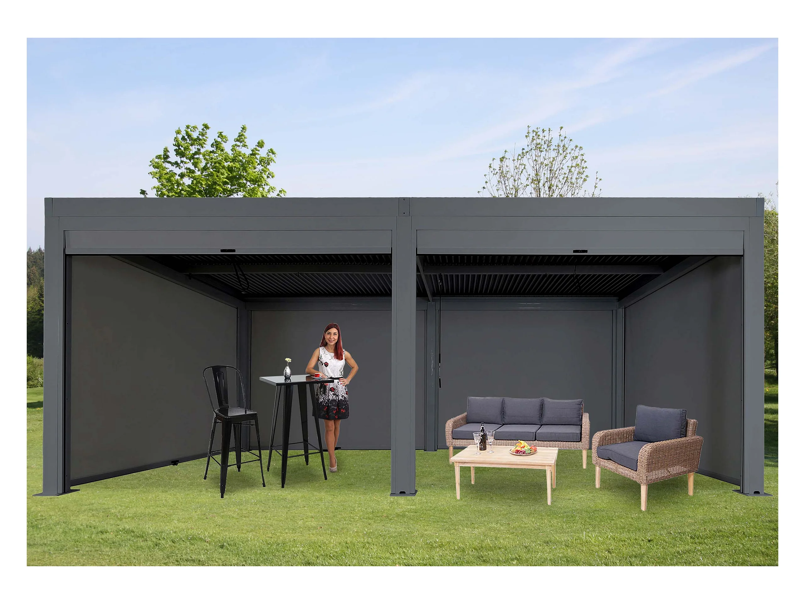 Aluminiowa pergola MCW-L41 z 6-krotną ścianą boczną, antracyt