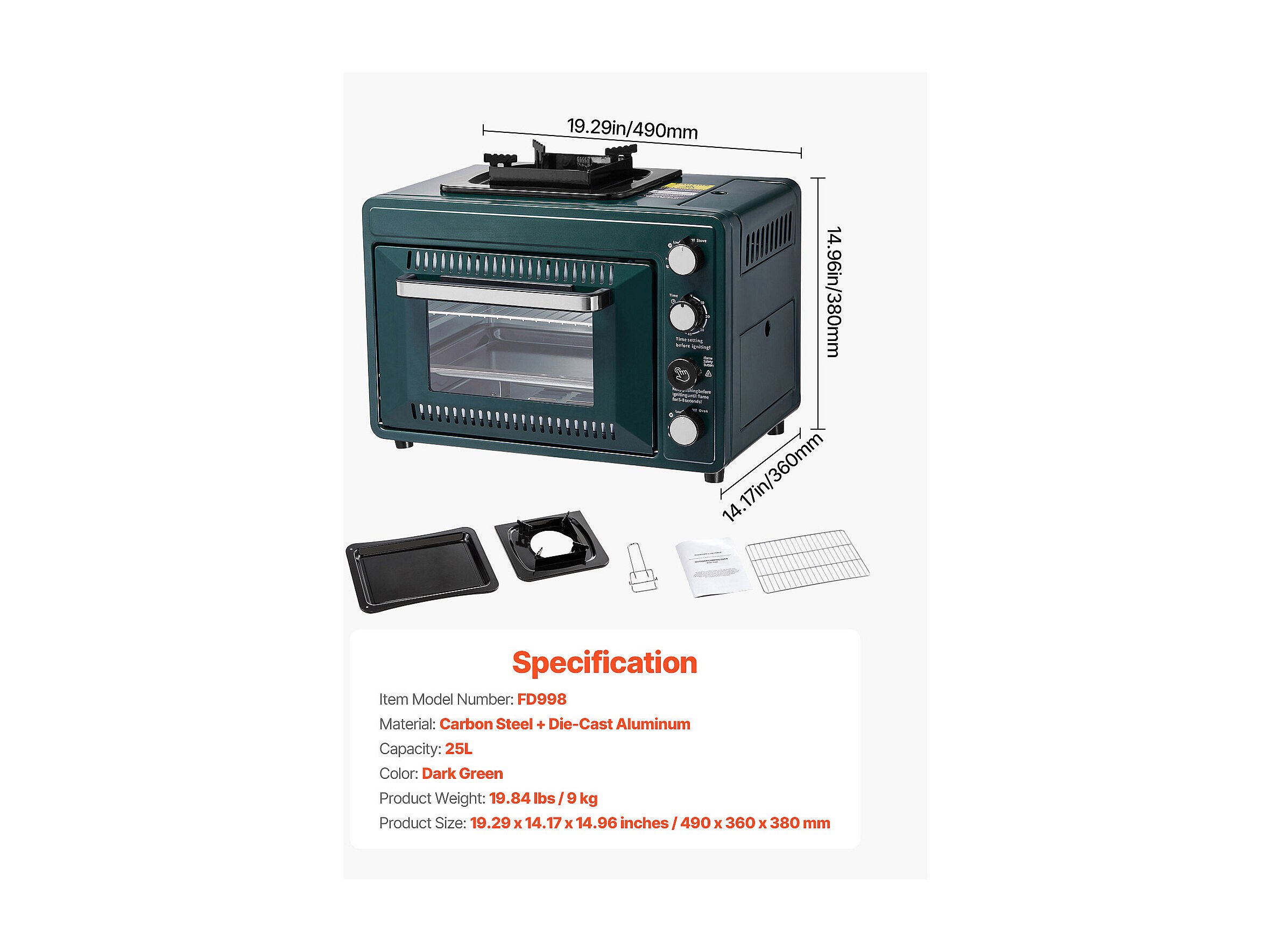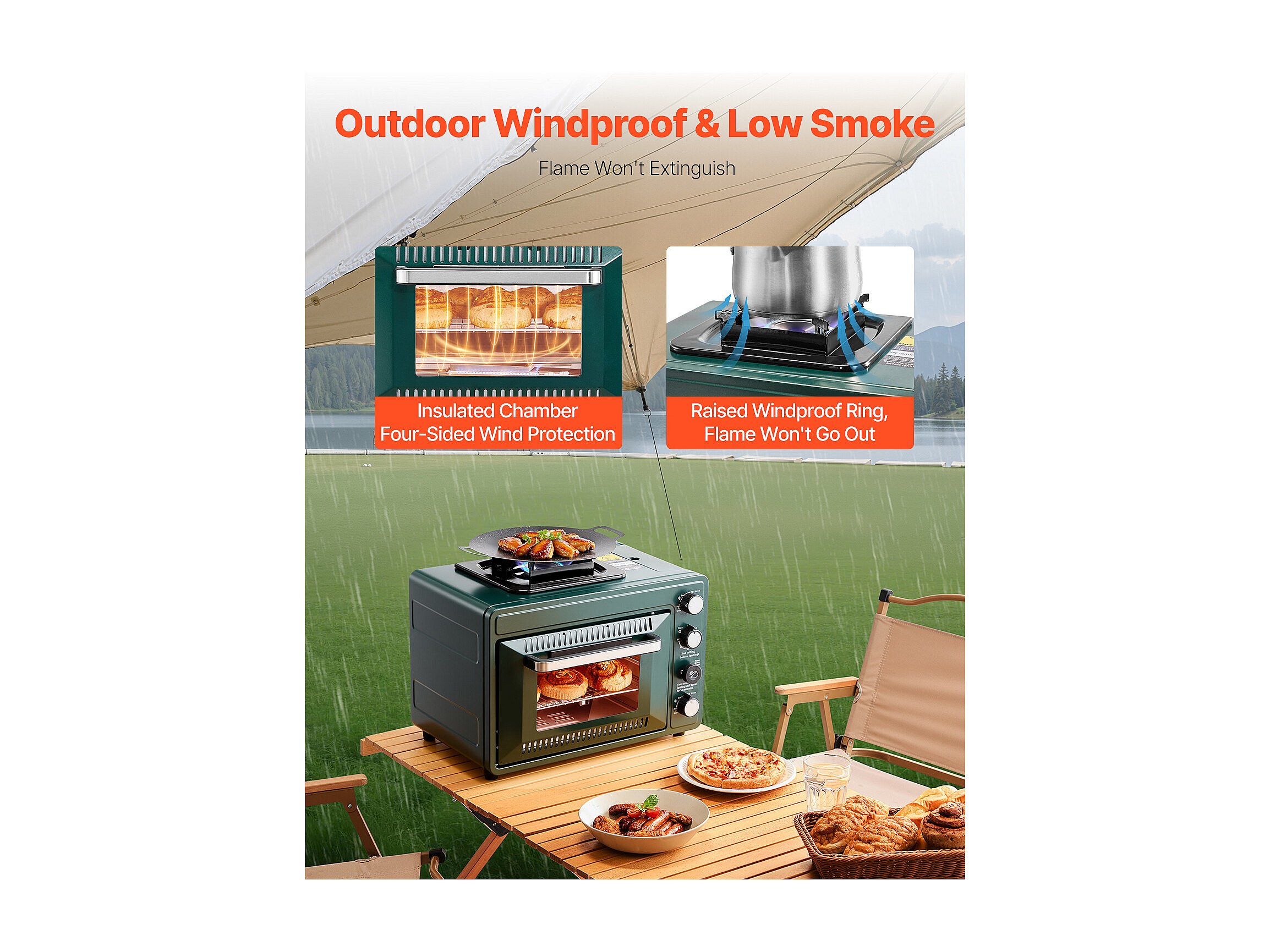 Pieprznik na Gaz SucceBuy, Regulowane Ogień, Przenośny Palnik Kampingowy na Gaz 2 w 1, Przewiewa, z Grillą i Płytą Gotowania, do Gotowania na Otwartym Powietrzu