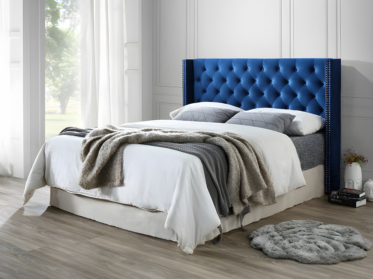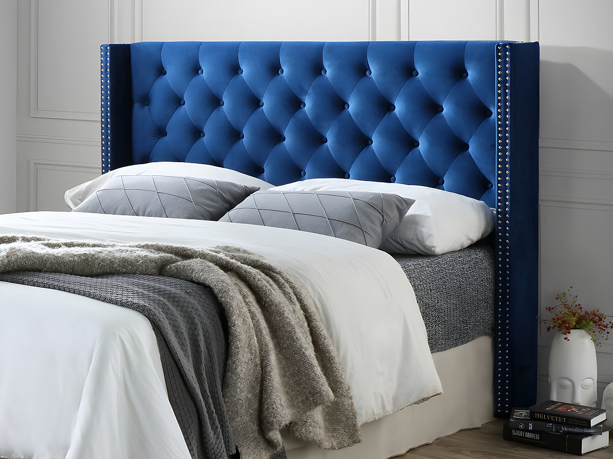 Pikowany zagłówek MASSIMO - Welur - 160 cm - Kolor niebieski