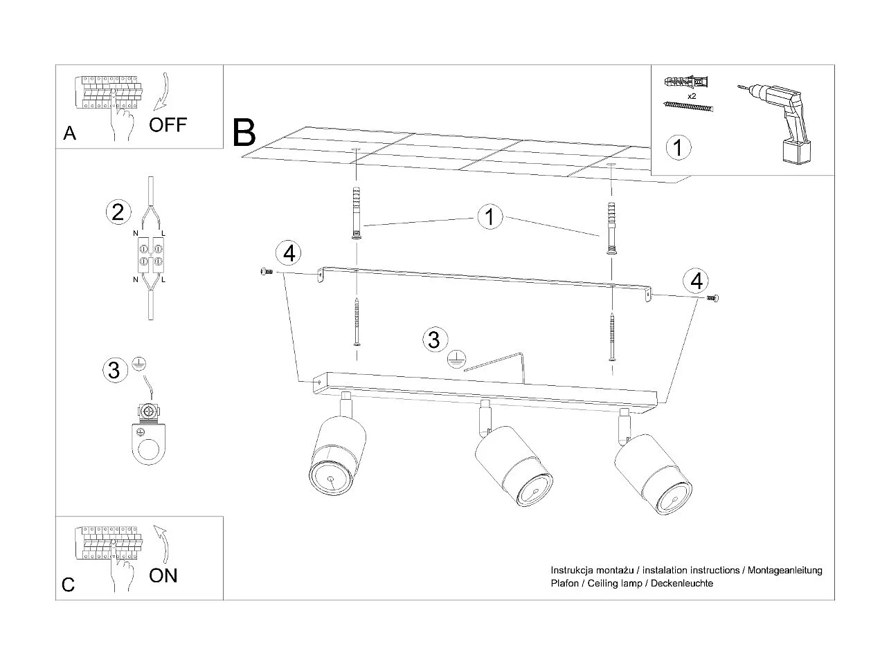 Plafony minimalistyczny Torim, stal - 3 źródło światła 3000K - L.46 x H.20 cm - czarny
