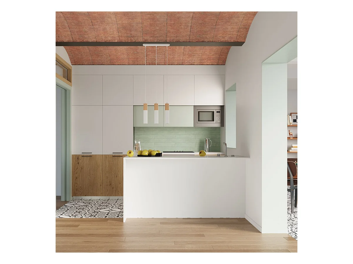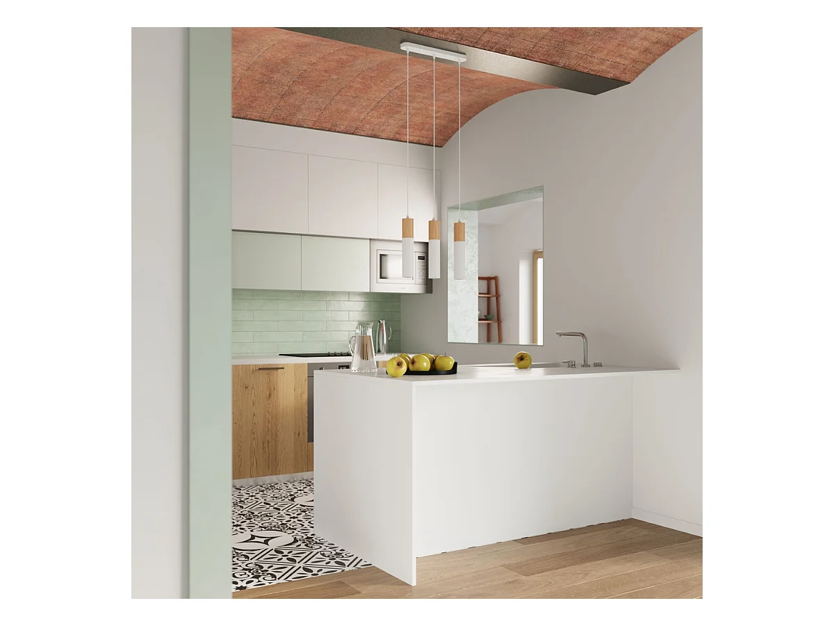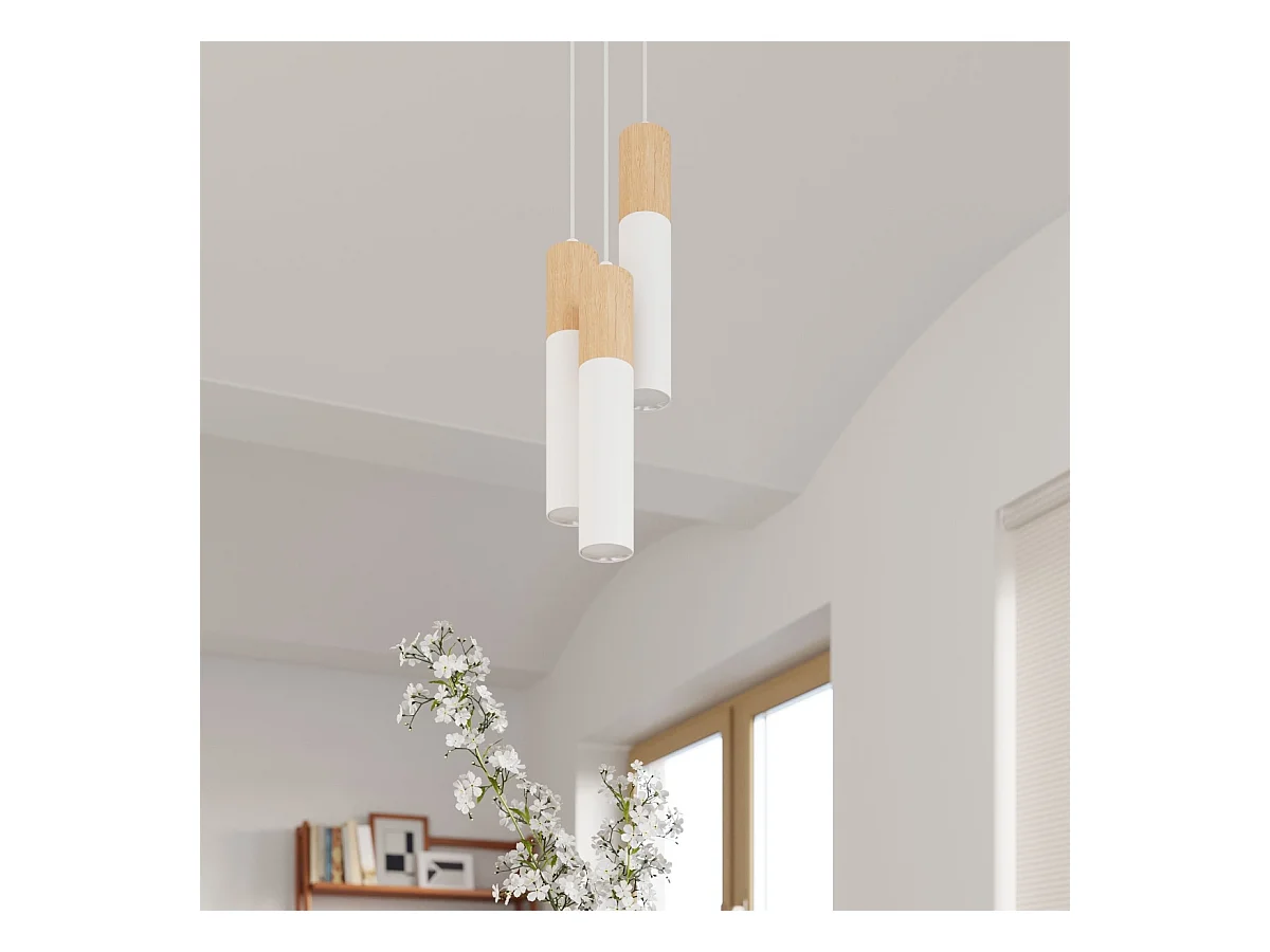 Plafony nowoczesny Poblano, stal/drewno - 1 źródło światła 4000K - L.6 x H.30 cm - naturalne drewno/biały