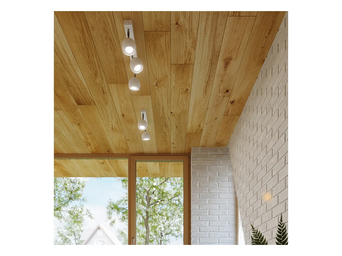 Plafony nowoczesny Flare, stal/drewno - 2 źródło światła 4000K - L.46 x H.17.5 cm - biały/drewno
