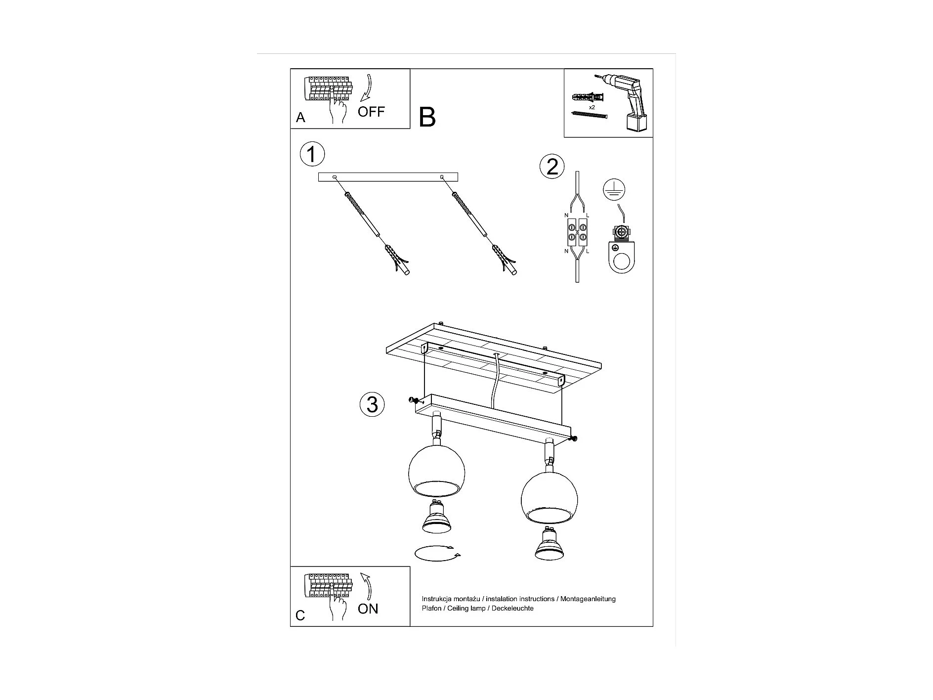 Plafony nowoczesny Alvor, stal - 2 źródło światła 3000K - L.30 x H.18 cm - czarny/chrom