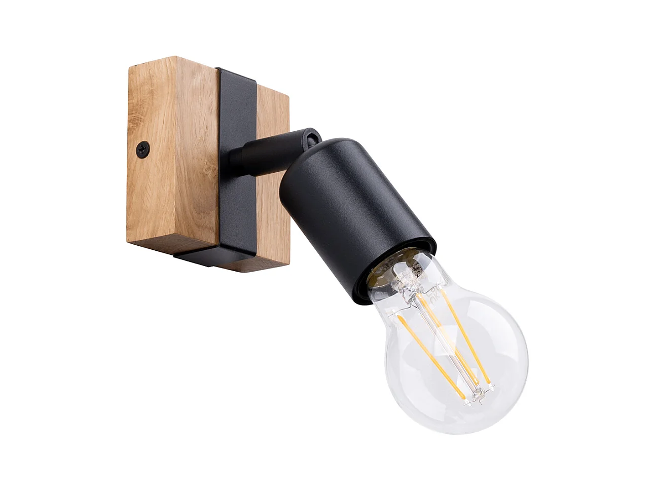 Plafony nowoczesny Shad, stal/drewno - 1 źródło światła 3000K - L.14 x H.11 cm - czarny/drewno