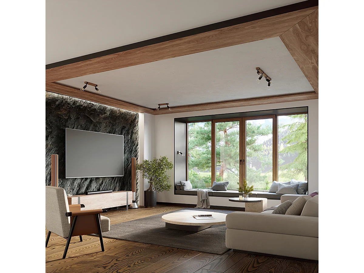 Plafony nowoczesny Shad, stal/drewno - 1 źródło światła 4000K - L.14 x H.11 cm - czarny/drewno
