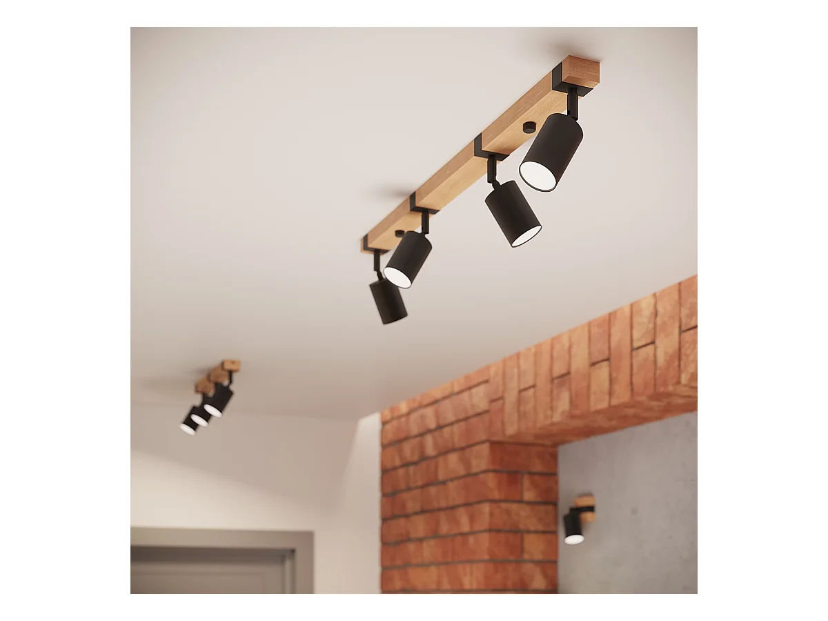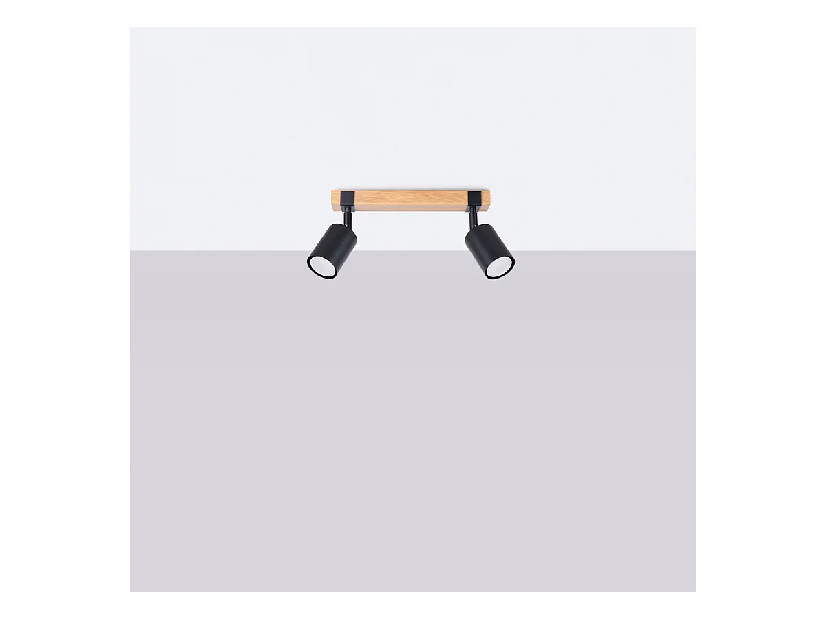 Plafony skandynawski Zynelix, stal/naturalne drewno - 2 źródło światła 4000K - L.38 x H.17.2 cm - czarny/naturalne drewno