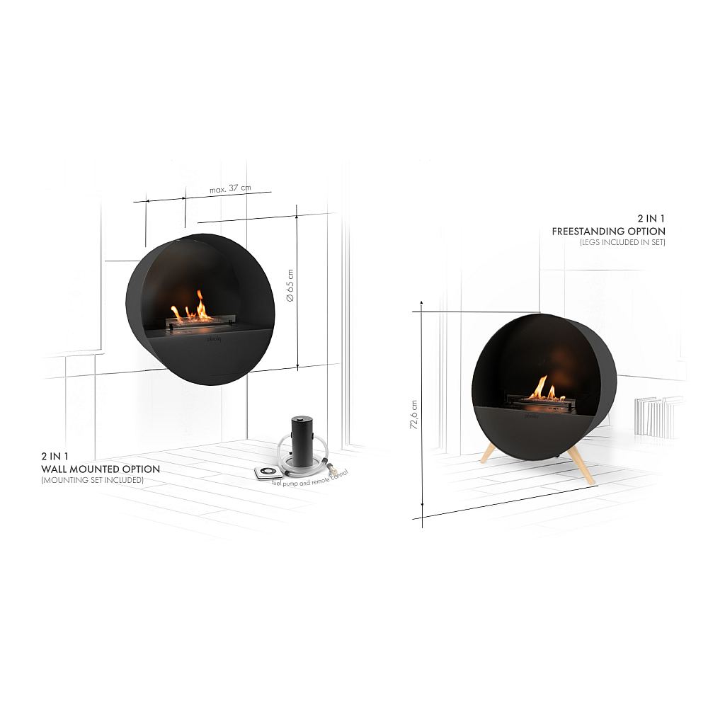Planika - Mandala Biofireplace przenośny kominek bioetanolowy z technologią Commerce, czarne szkło cylindryczne