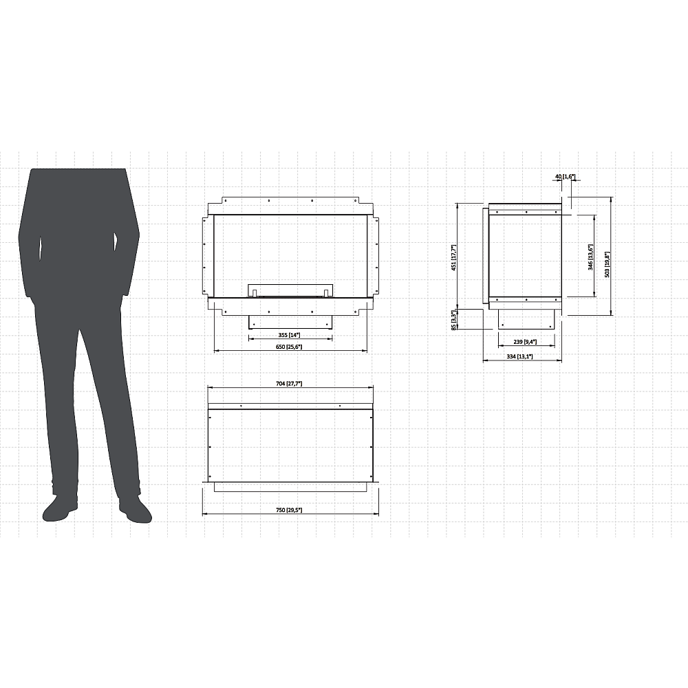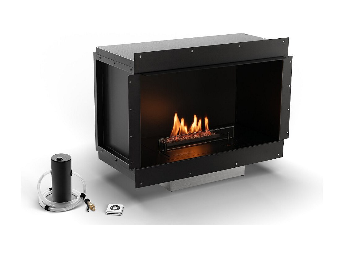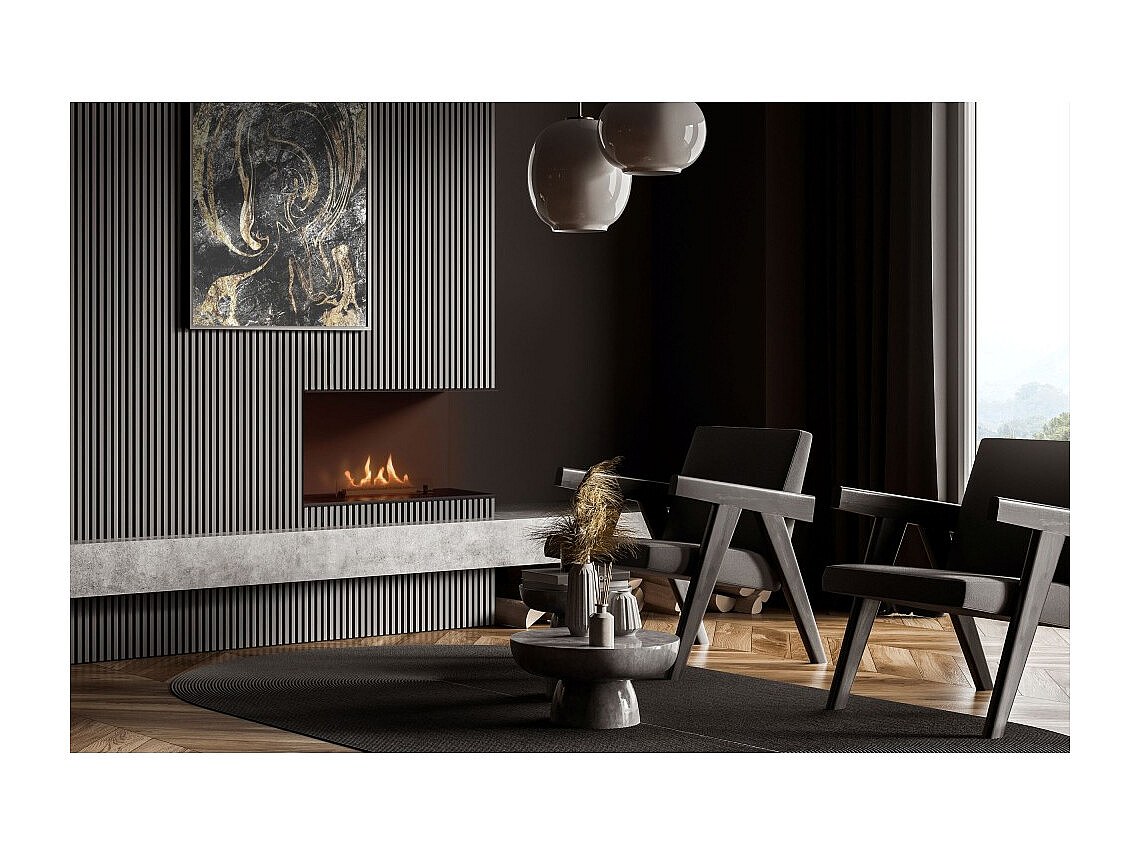 Kominek bioetanolowy Inside Black 800 do zabudowy - matowa czerń, ze szkłem, palnik 1L, nowoczesny design