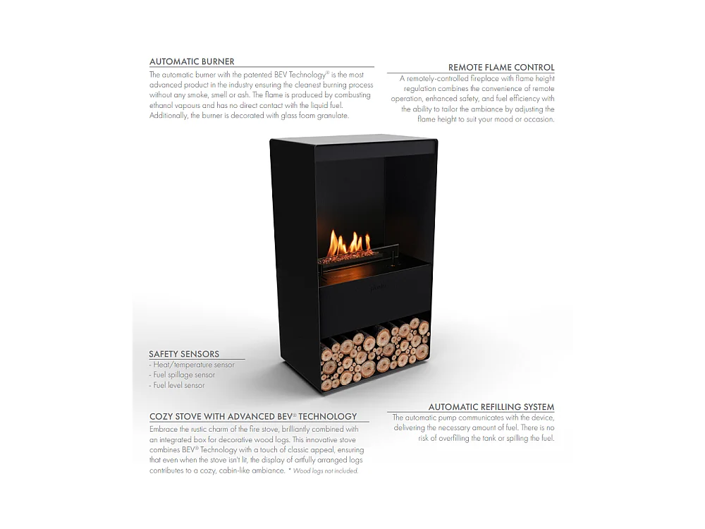 Planika - Kominek bioetanolowy Senso Stove BEV bez odpowietrznika, pilot zdalnego sterowania, stal, piec na bioetanol