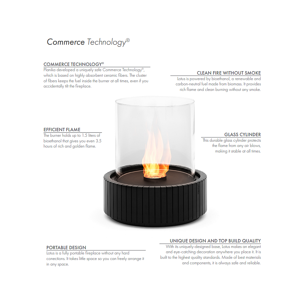 Planika - Lotus Stołowy Biokominek Przenośny Biokominek z Technologią Commerce, Szkło Cylindryczne