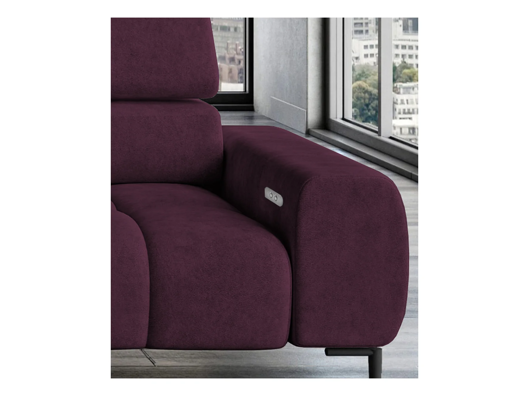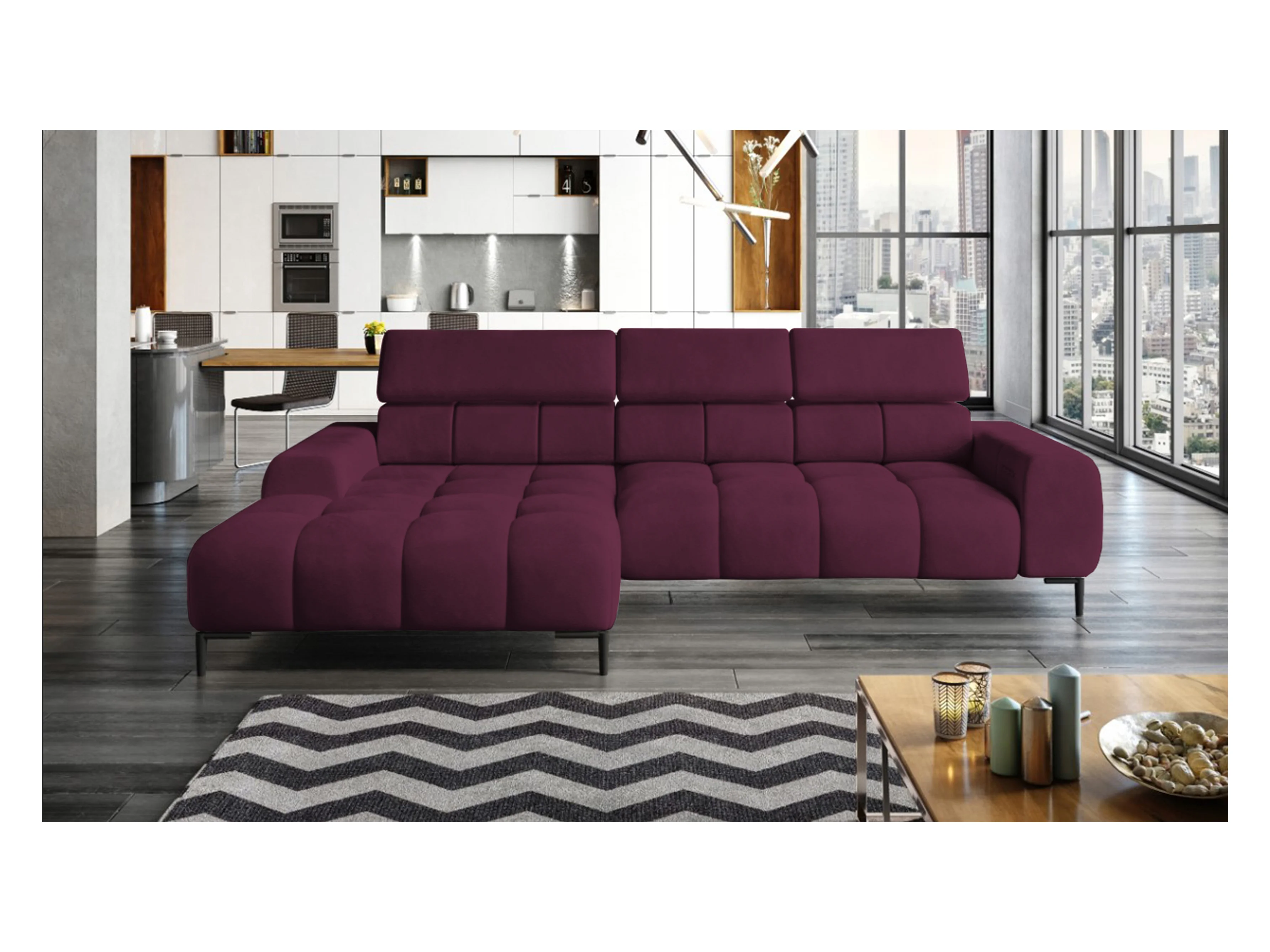 Plaza Sofa Narożna w układzie "U" - Prawa, Funkcja spania, Regulowane zagłówki i siedzisko, 385x216 cm, Bordowa
