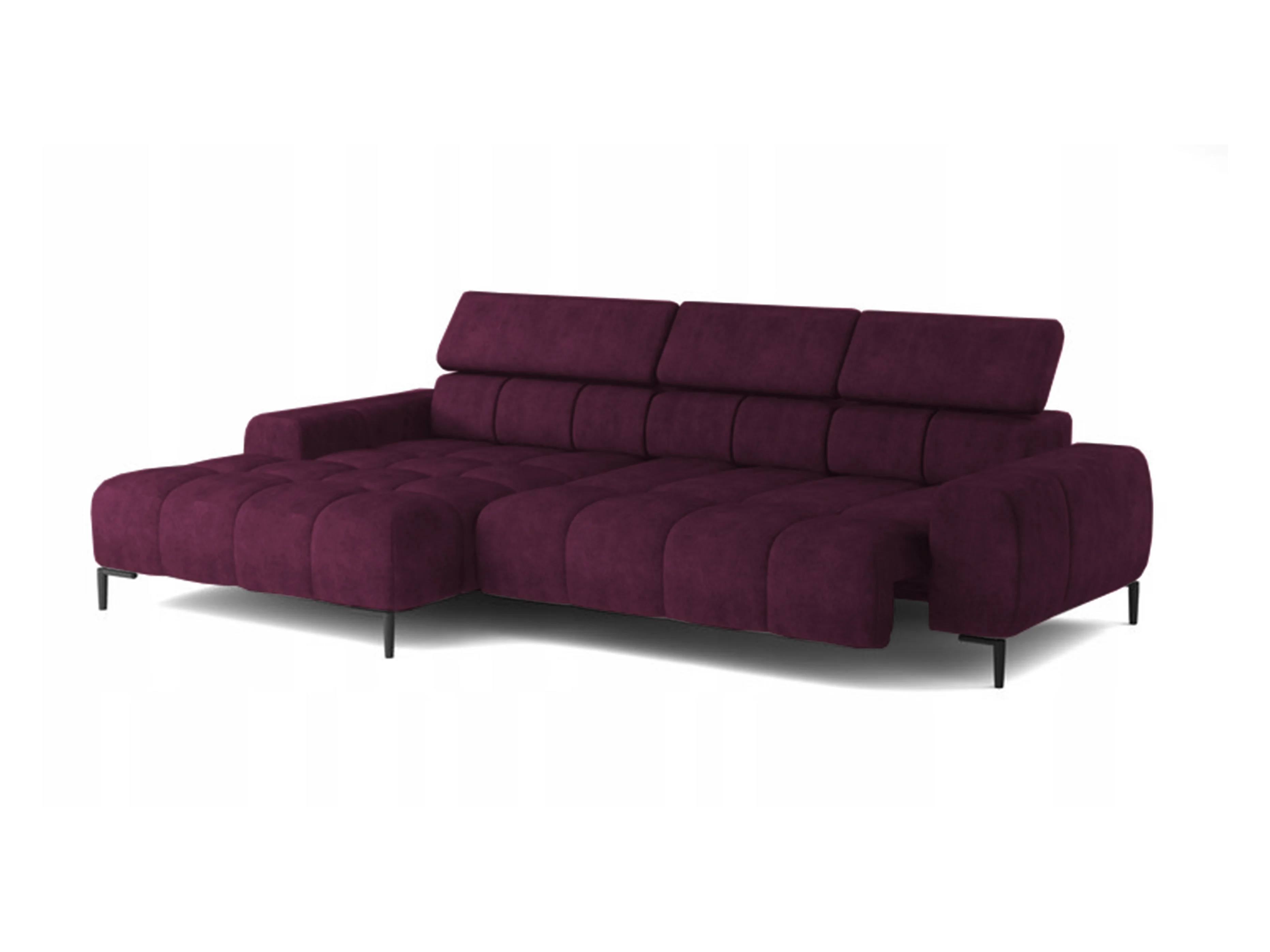 Narożnik PlazaMINI L-Form Lewy, sofa z funkcją spania, 3-osobowa, regulowane zagłówki, MONOLITH, 177x270x99 cm, Bordowy